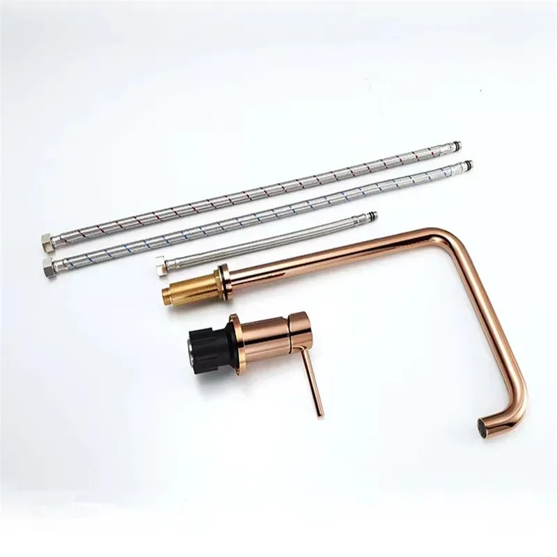 Tuqiu Rose Gold robinet de lavabo salle de bains deux trous généralisé robinet de lavabo de salle de bain 360 rotatif généralisé robinet de lavabo noir