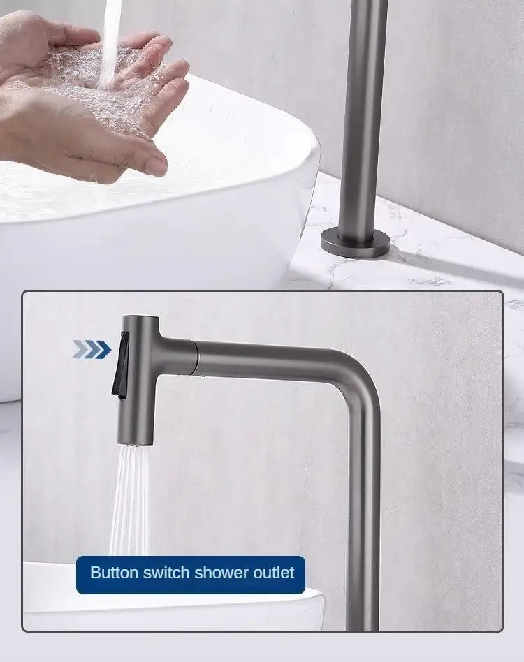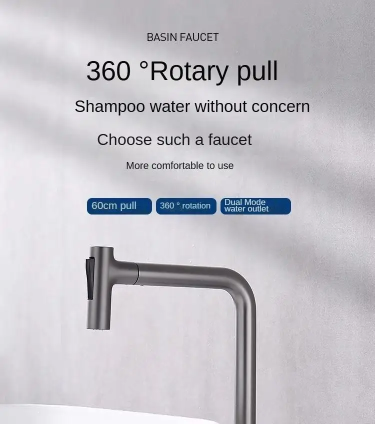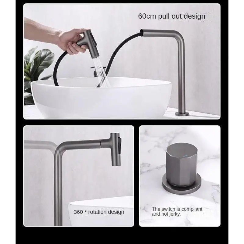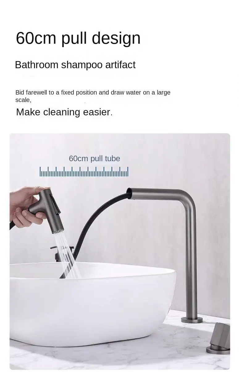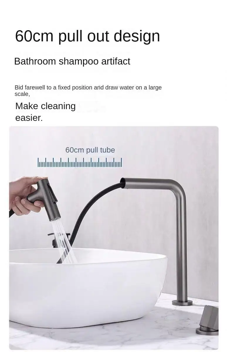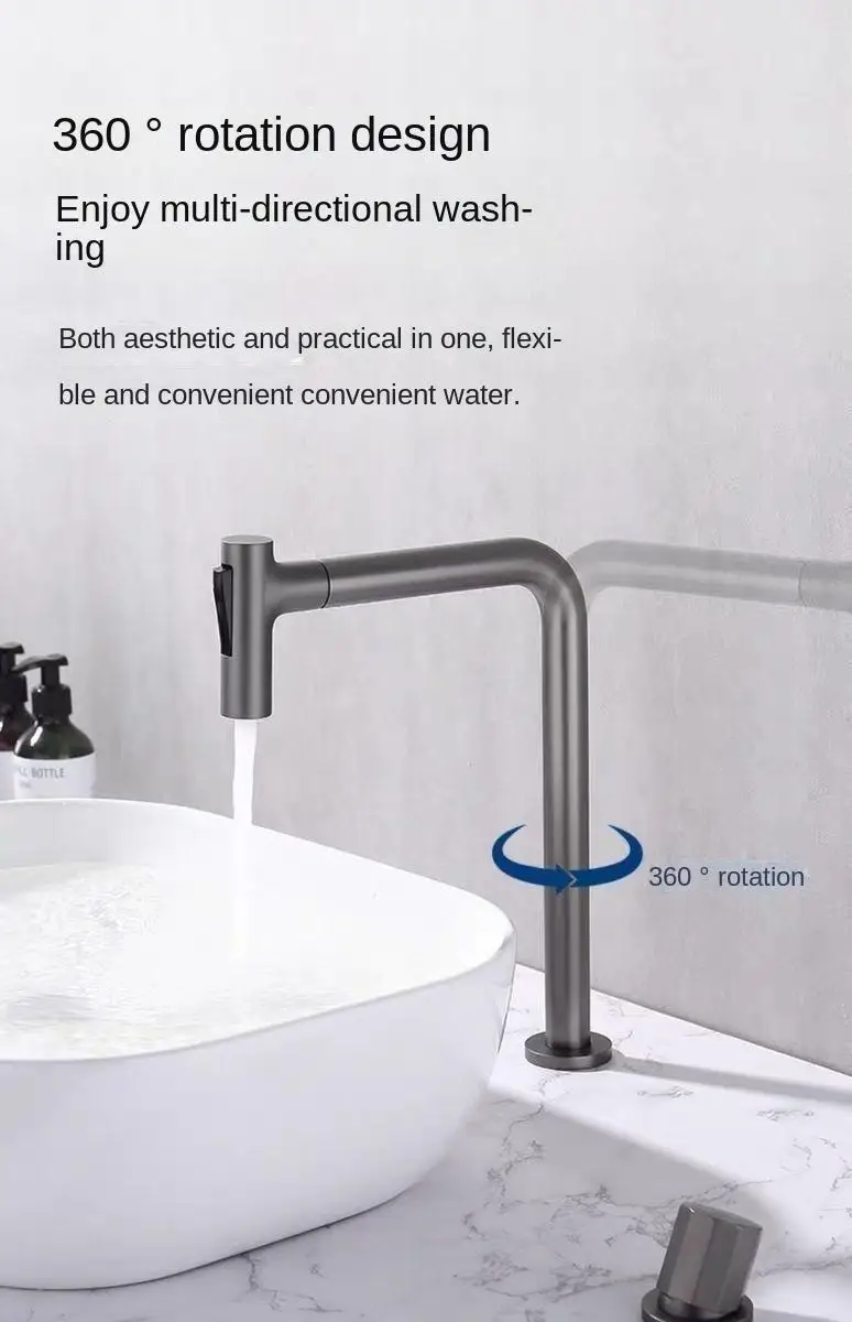 Robinet de lavabo extractible à poignée unique, double trous, robinet mixte chaud et froid, robinet fendu, salle de bain, lavabo, robinet rotatif à 360 degrésRobinet de lavabo extractible à poignée unique, double trous, robinet mixte chaud et froid, robinet fendu, salle de bain, lavabo, robinet rotatif à 360 degrés