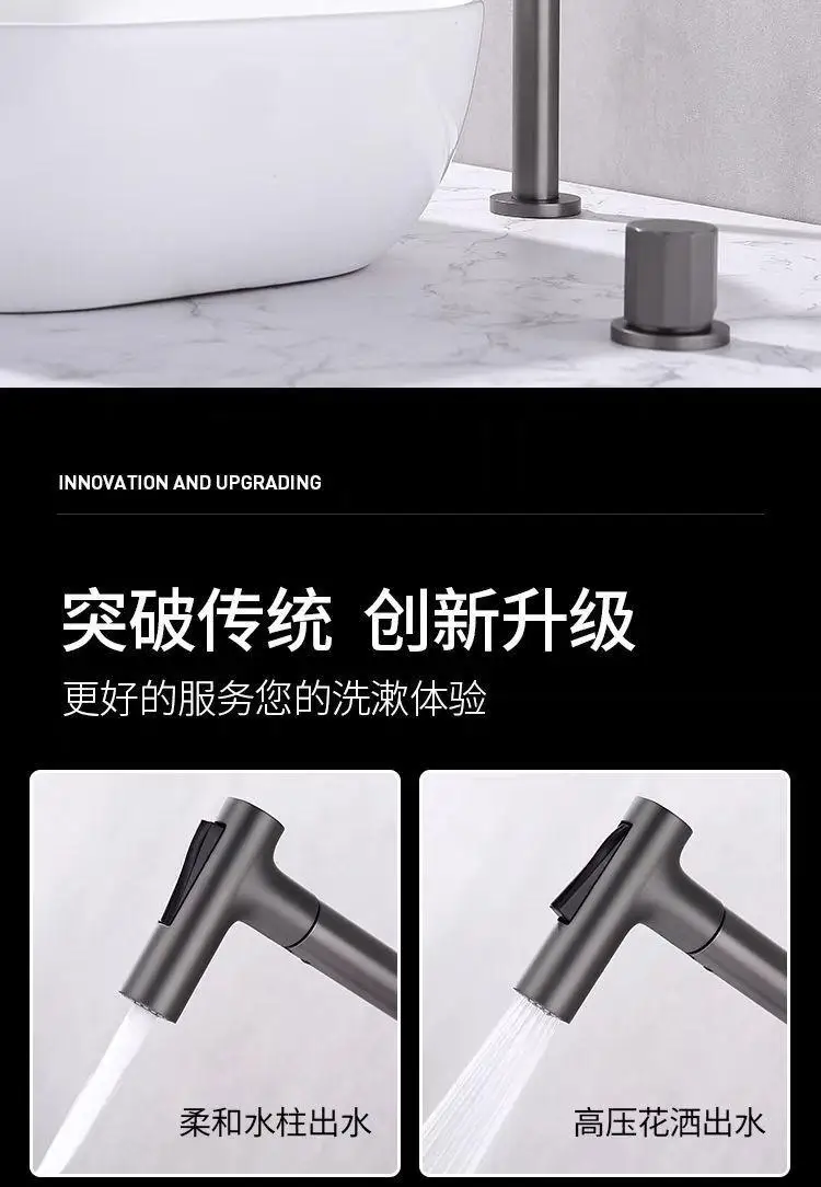 Robinet de salle de bains en or brossé, pistolet à deux trous, robinet de lavabo gris, robinet d’évier en Nickel, robinet de lavabo noir répandu