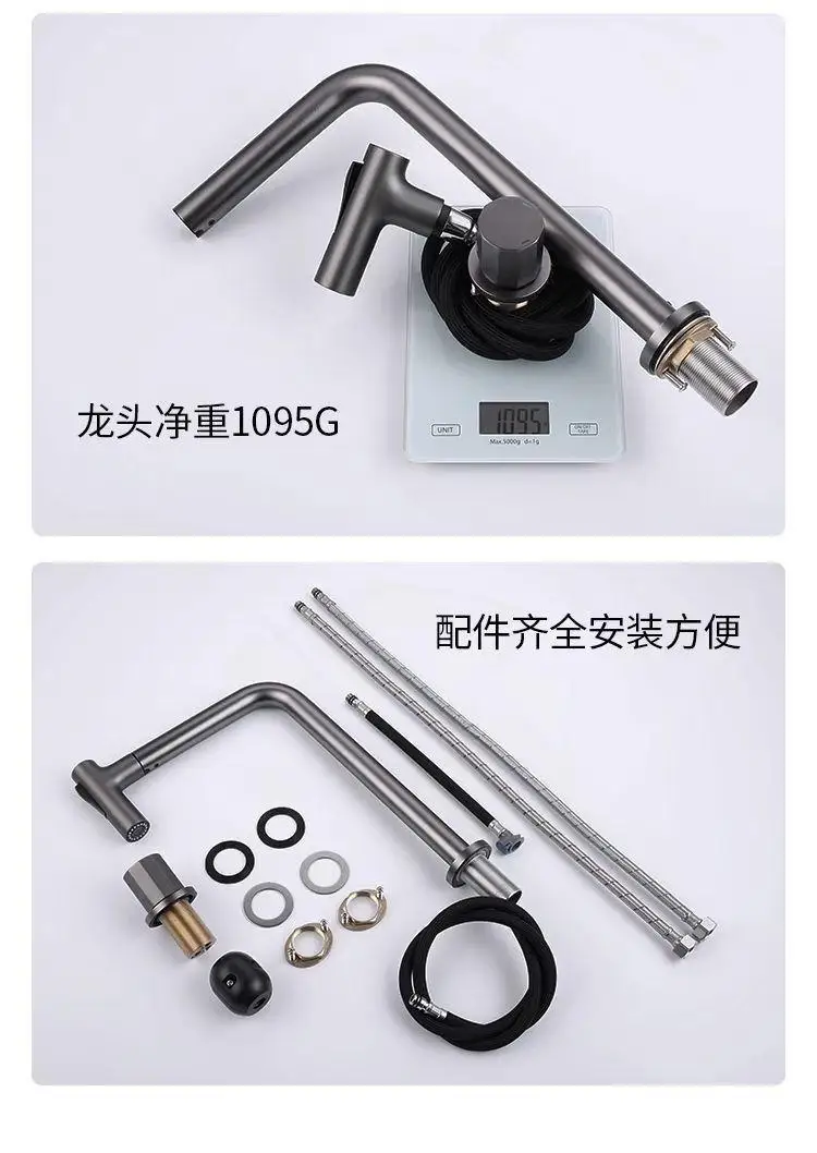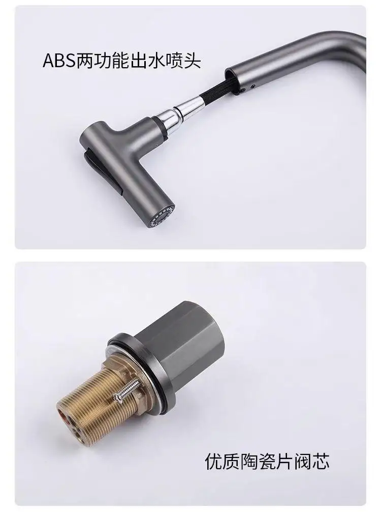Robinets de cuisine noirs gris, Rotation extractible, cascade, tête de pulvérisation, mélangeur d’évier, accessoire de robinet d’eau en nickel brossé