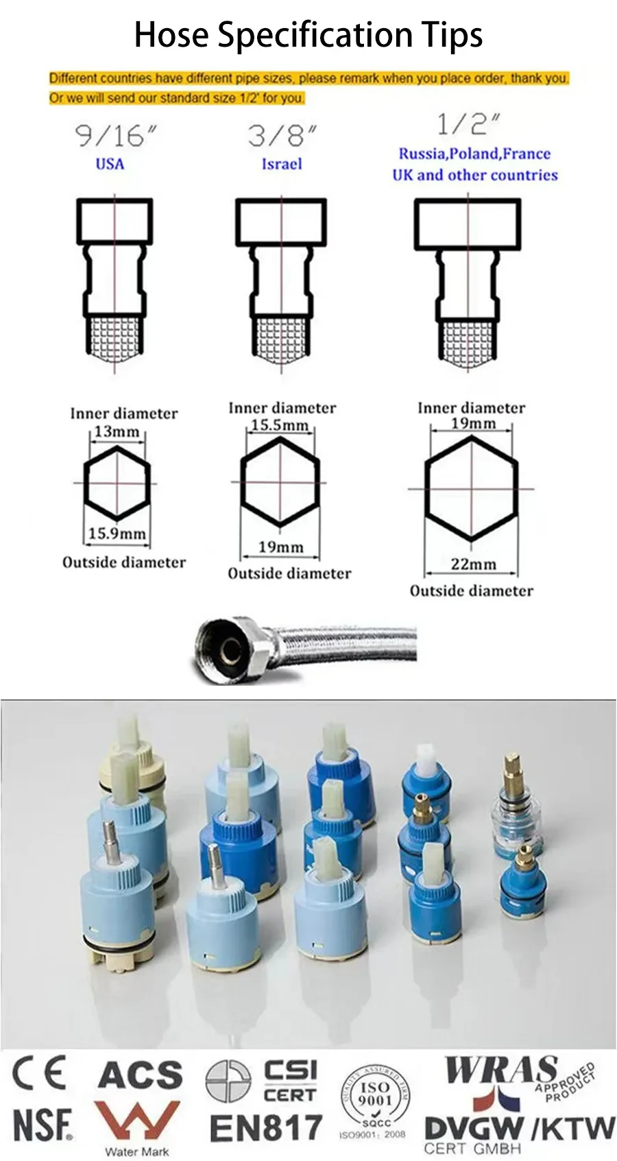 • Hose: A pair of 50 & 60cm stainless steel hot and cold hoses