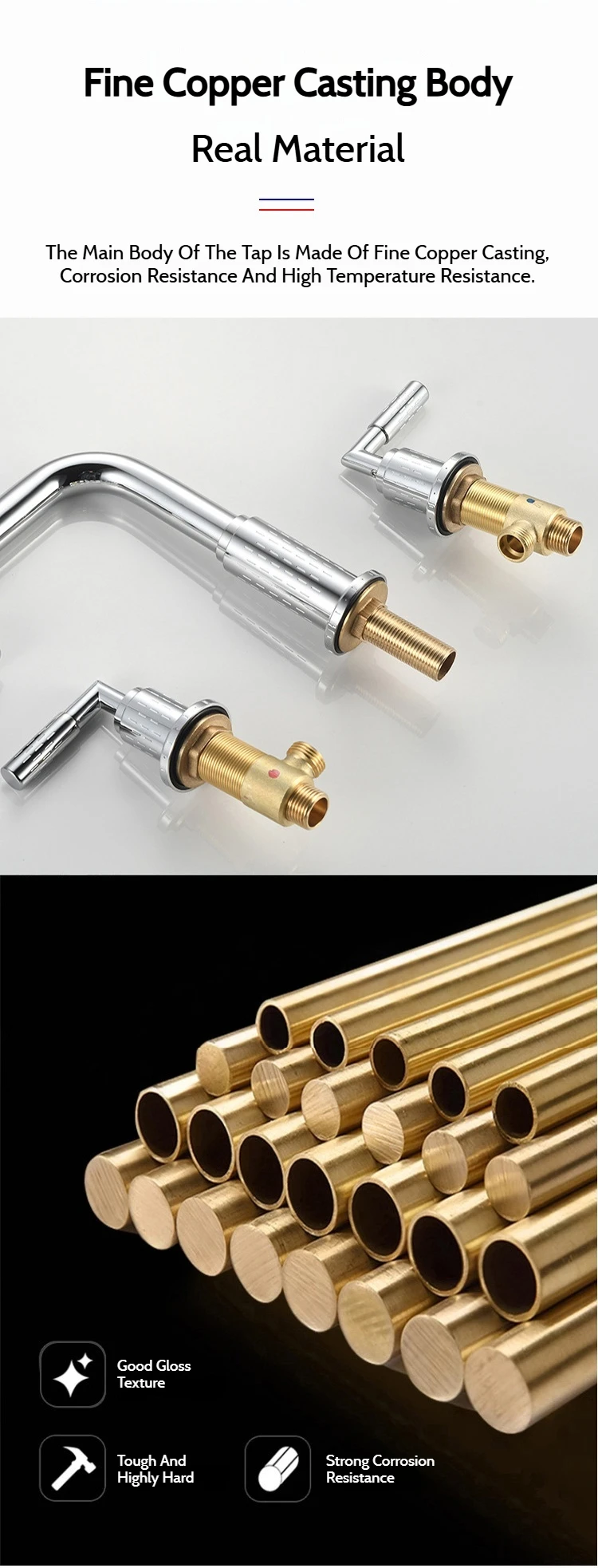 Robinet de lavabo fendu doré brossé, robinet de lavabo domestique monté sur le pont, tout en cuivre, trois trous, Double poignée, robinet chaud et froidRobinet de lavabo fendu doré brossé, robinet de lavabo domestique monté sur le pont, tout en cuivre, trois trous, Double poignée, robinet chaud et froid