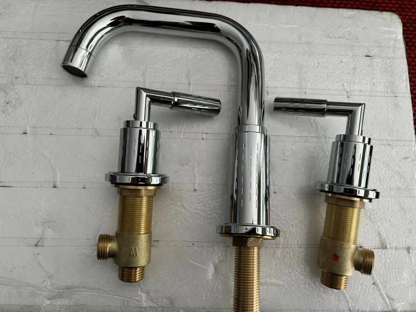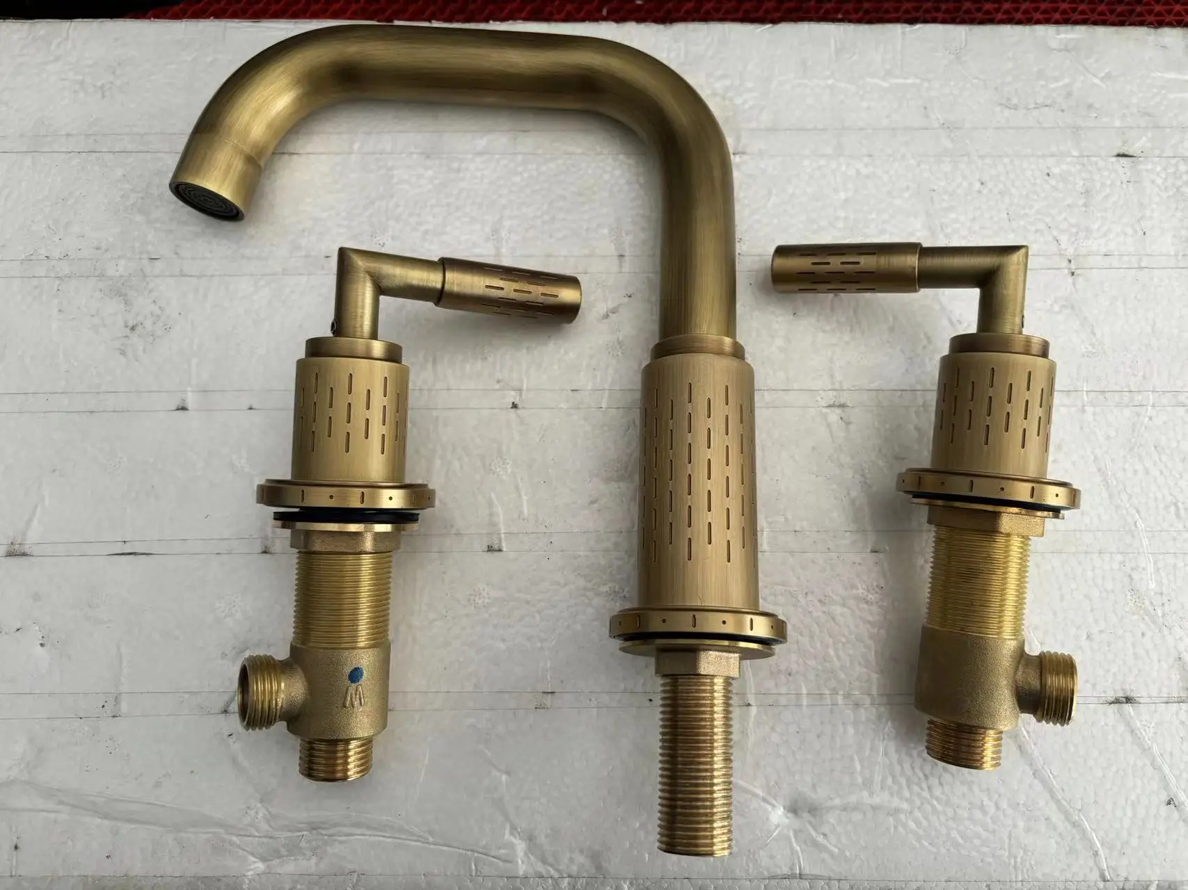 Soyez le premier à laisser votre avis sur “Robinet de lavabo fendu doré brossé, robinet de lavabo domestique monté sur le pont, tout en cuivre, trois trous, Double poignée, robinet chaud et froid”