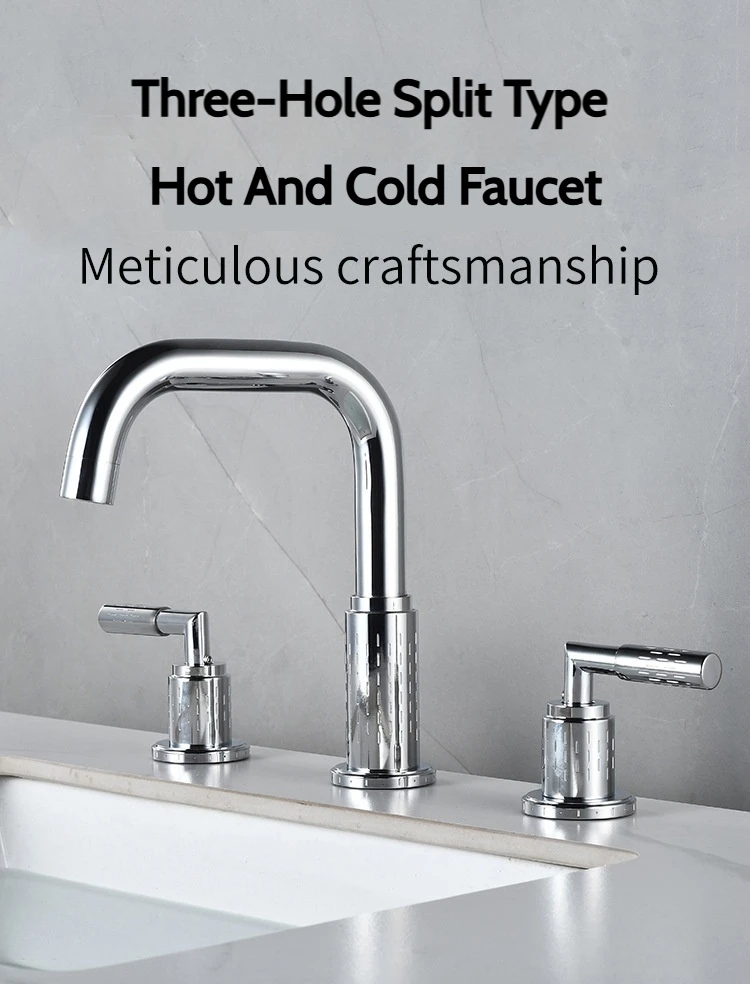 Robinet de lavabo fendu doré brossé, robinet de lavabo domestique monté sur le pont, tout en cuivre, trois trous, Double poignée, robinet chaud et froid