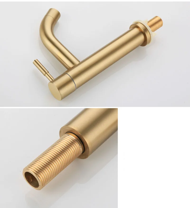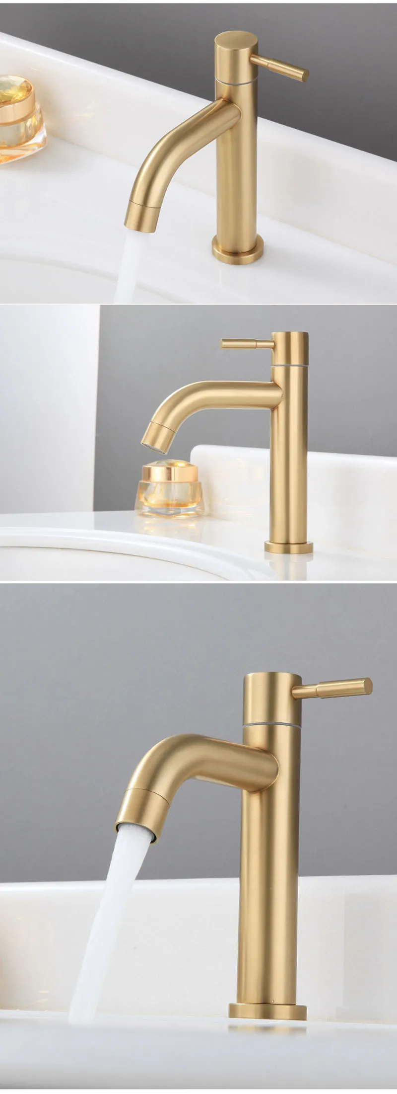 Robinet de lavabo froid simple en acier inoxydable 304, or brossé, robinet de lavabo de salle de bains, robinets de lavabo de salle de bains, lavabo de toilette