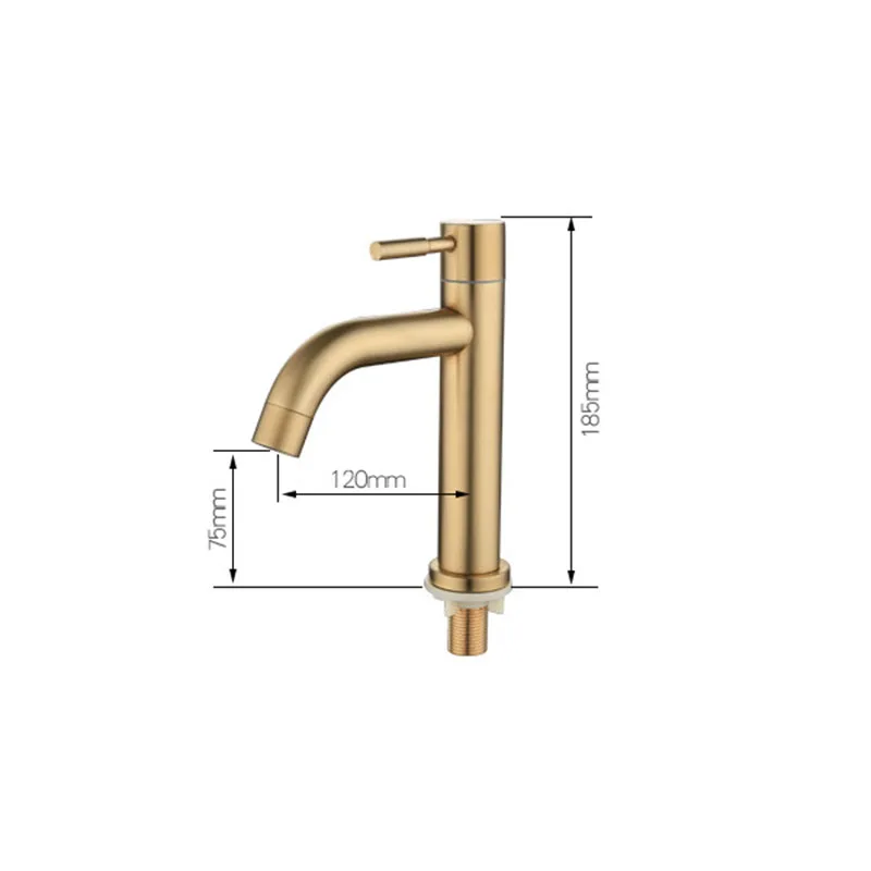 Robinet de lavabo froid simple en acier inoxydable 304, or brossé, robinet de lavabo de salle de bains, robinets de lavabo de salle de bains
