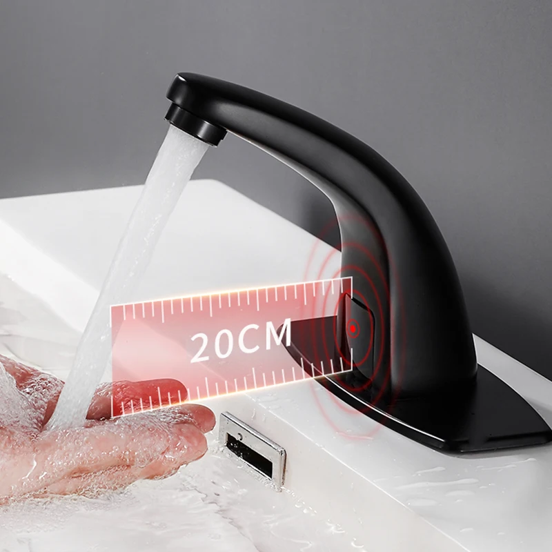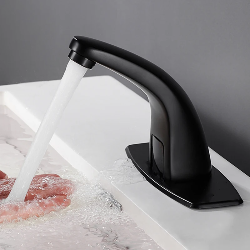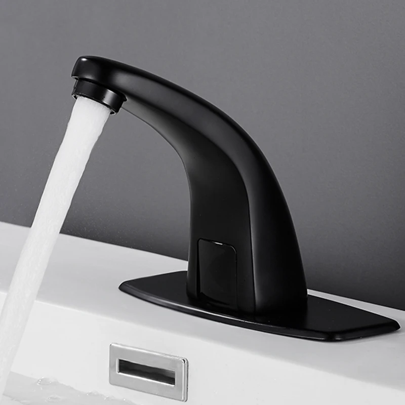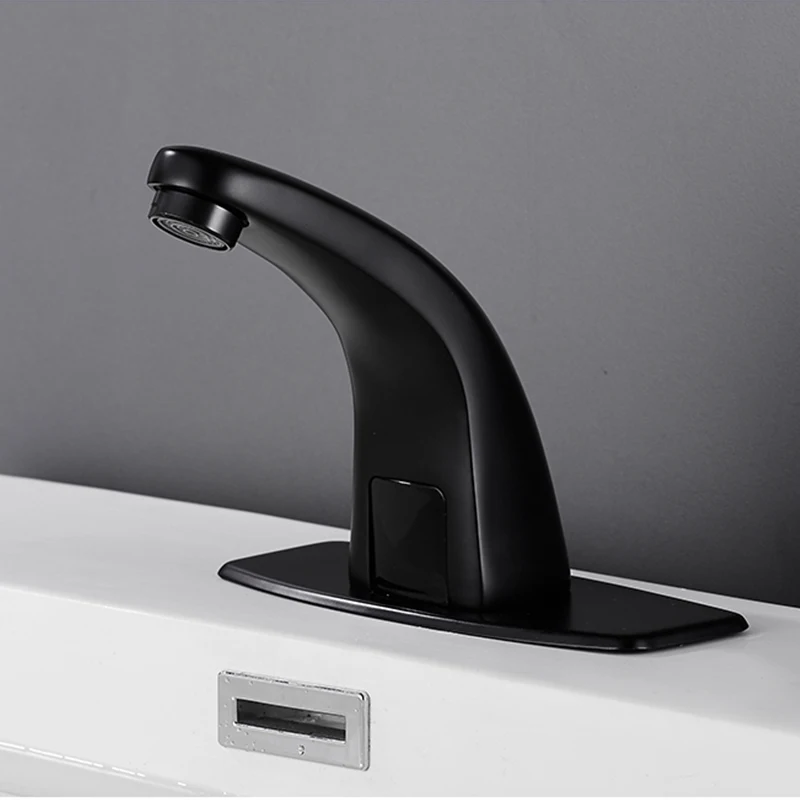 Robinet de lavabo intelligent à capteur noir mat mitigeur chaud et froid robinet de bassin de grue robinet sans contact robinet d’eau Torneira de lavatório