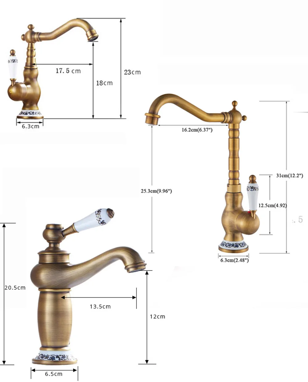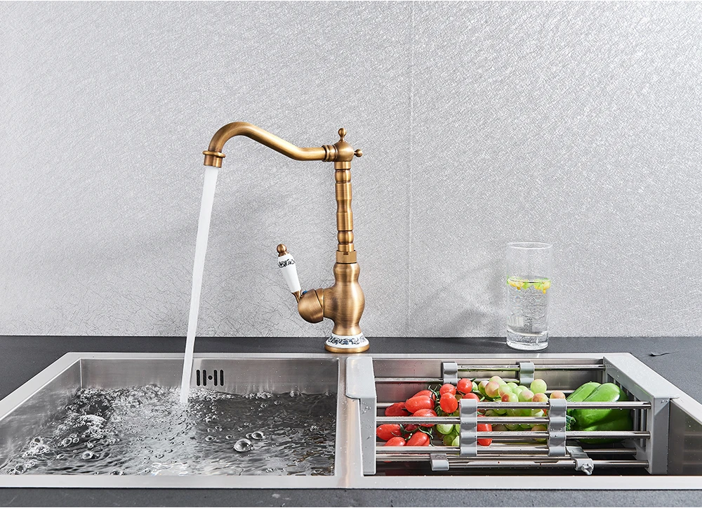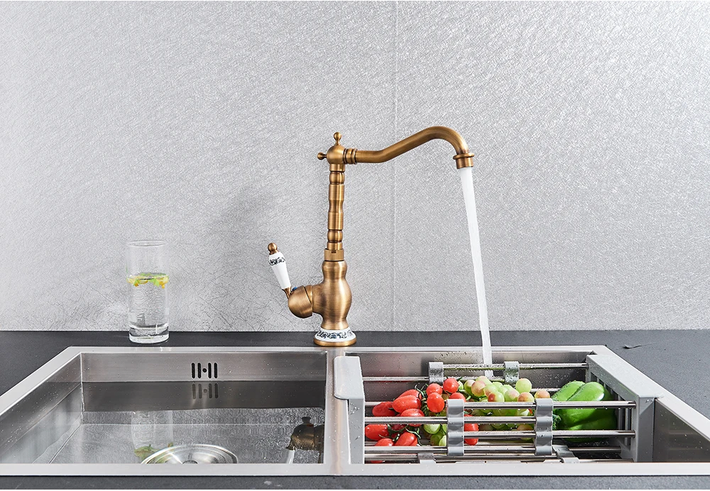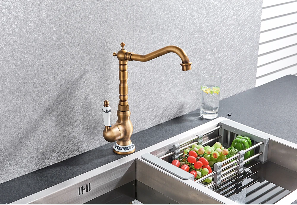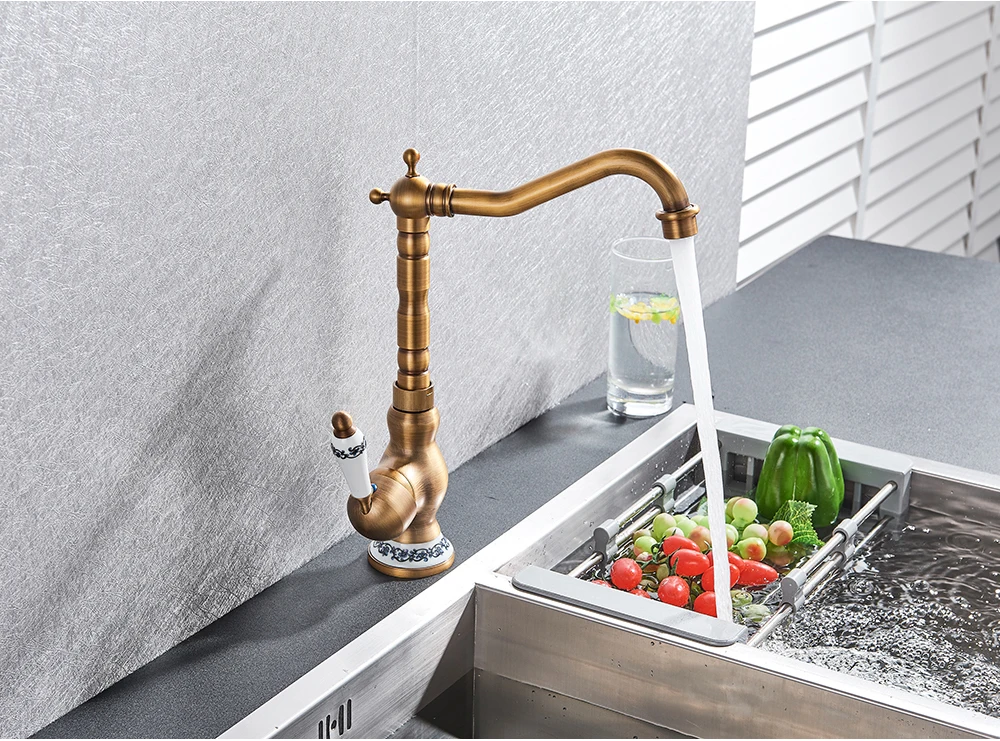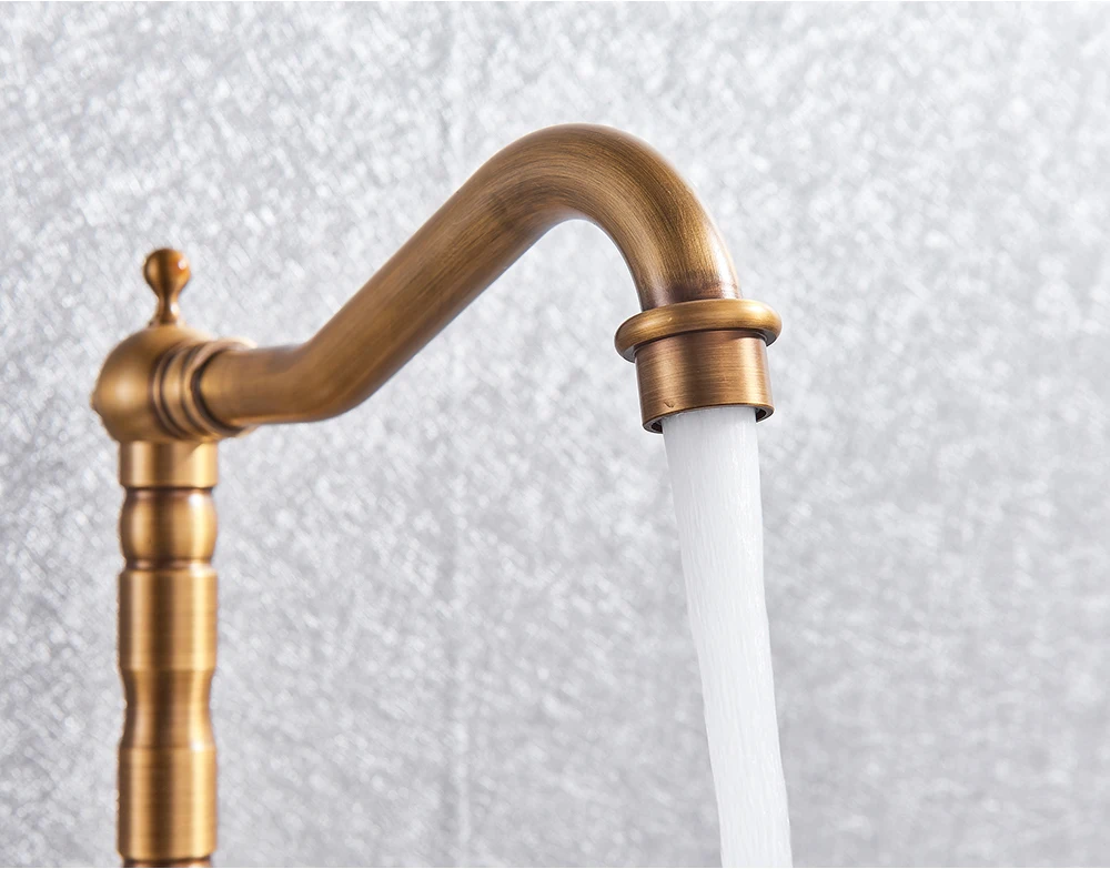 Robinet mitigeur d’évier de salle de bain en laiton moderne avec poignée en céramique Rotation antique Robinets d’eau chaude et froide de cuisine de salle de bain