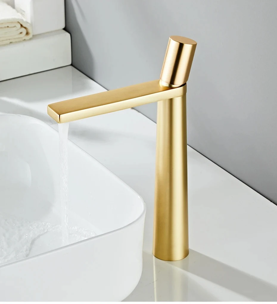 Robinet de lavabo moderne en laiton doré brossé, mitigeur de salle de bains, robinet de lavabo doré à poignée unique, robinet d'eau d'évier à trou unique |