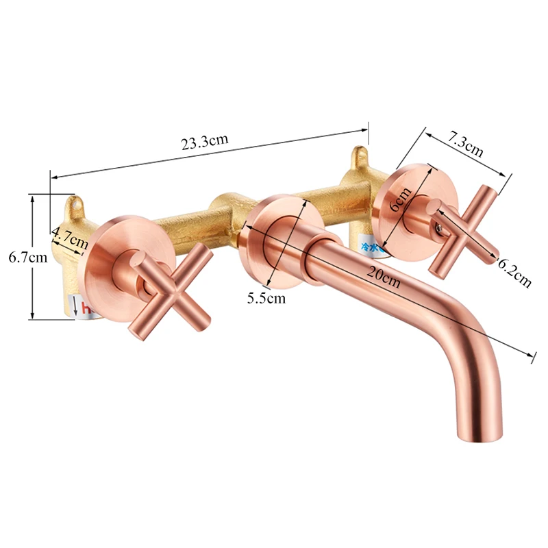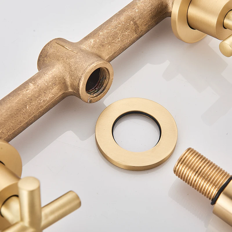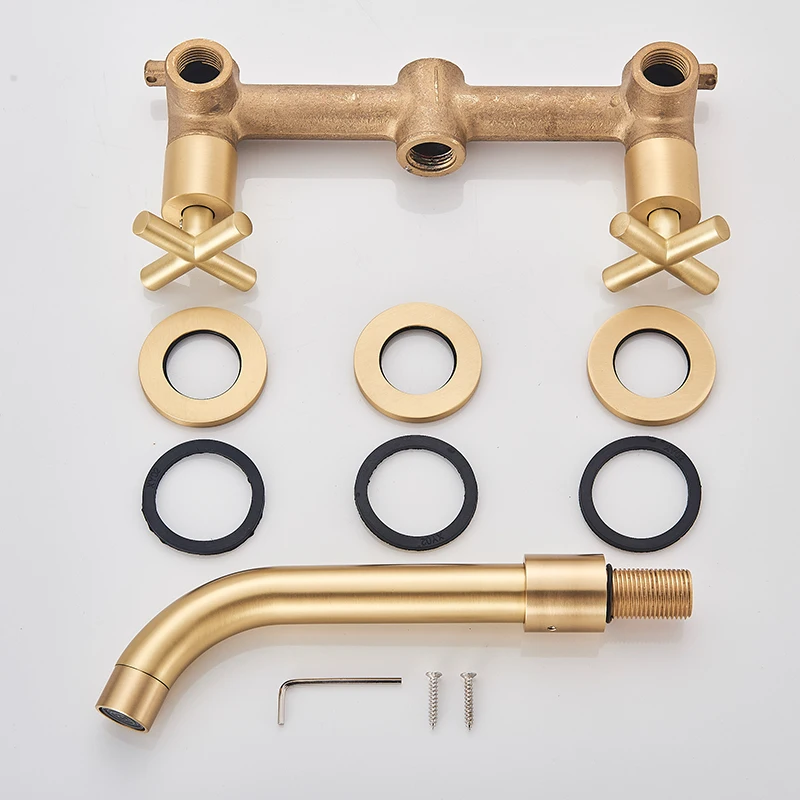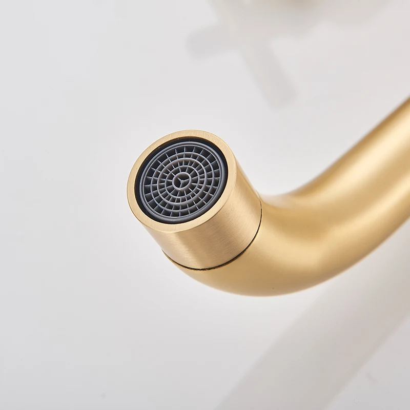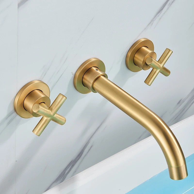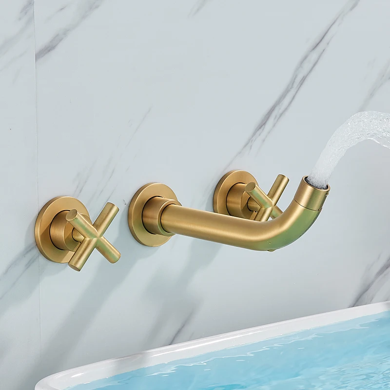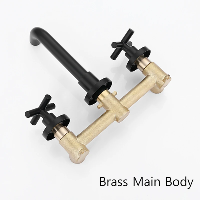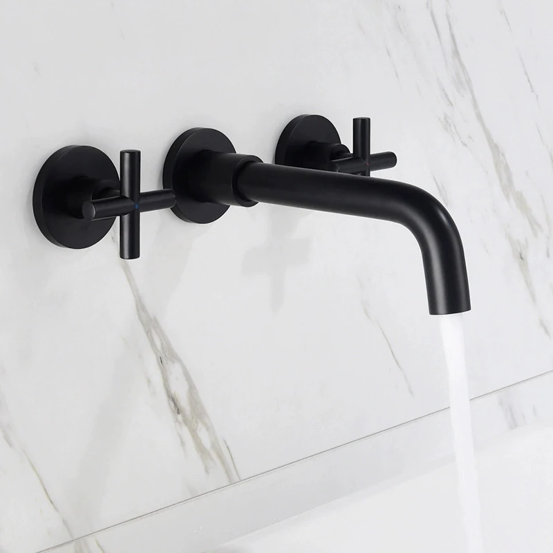 Robinet de lavabo noir robinet de lavage Double poignée 3 trous robinet de salle de bain mural 360 ° rotation robinet d’eau froide chaude grue