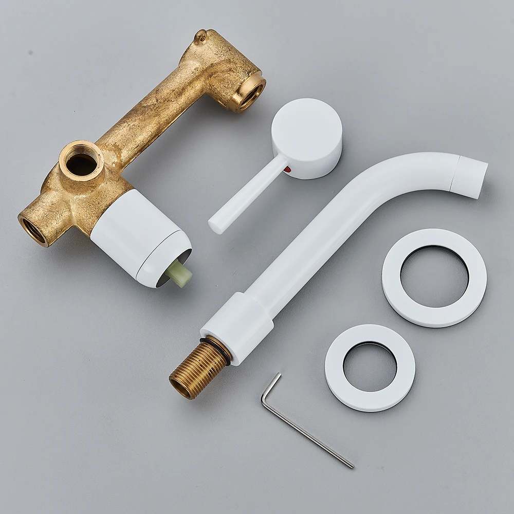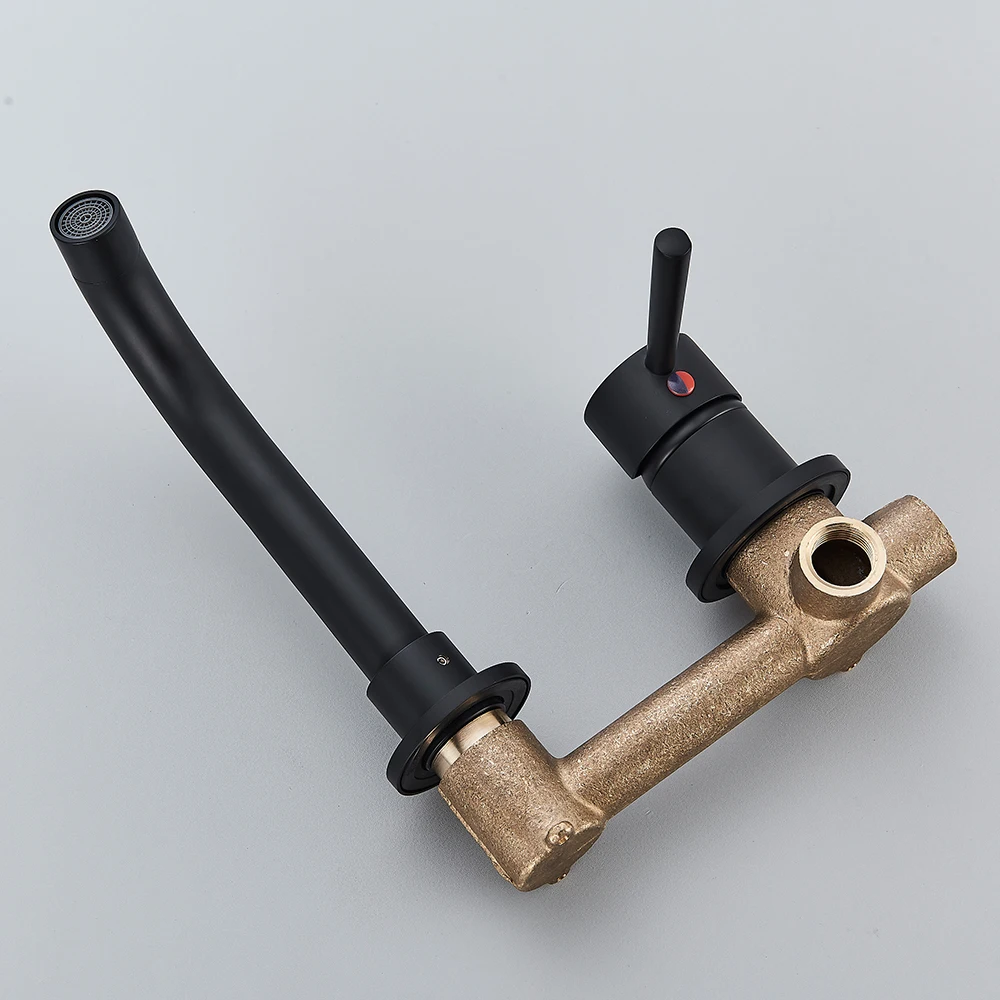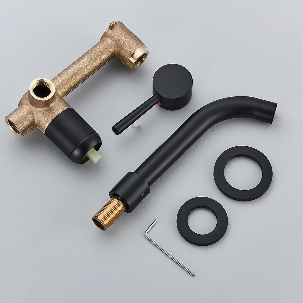 Robinet de lavabo noir mural 2 trous mélangeur de lavabo mitigeur à levier unique bec pivotant dissimulé installer robinet d’eau chaude froide