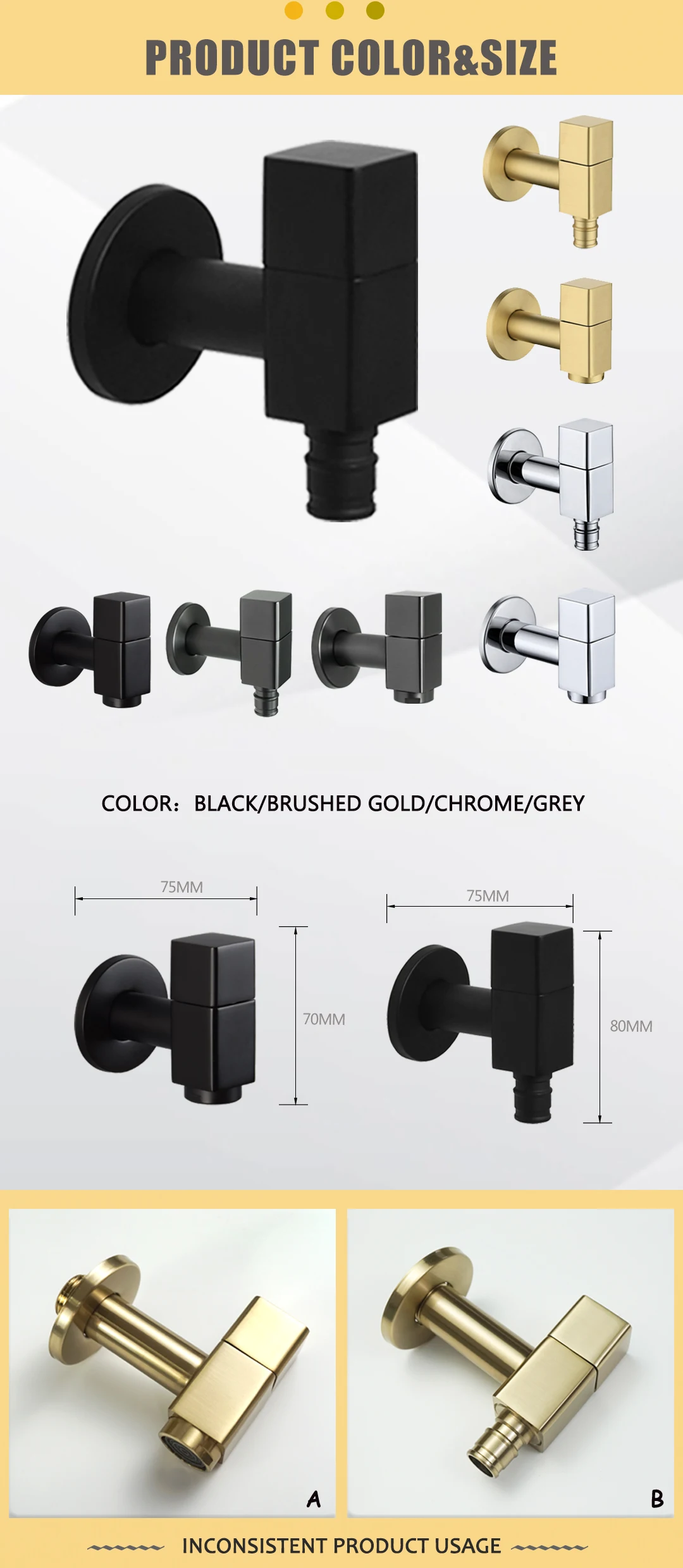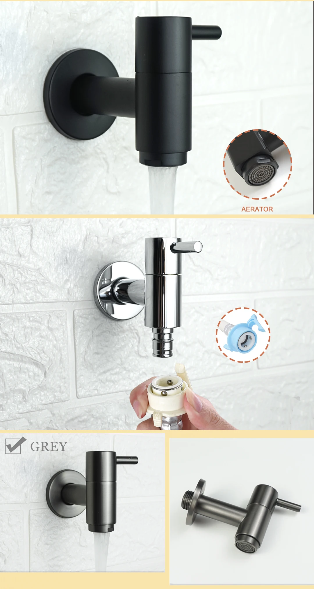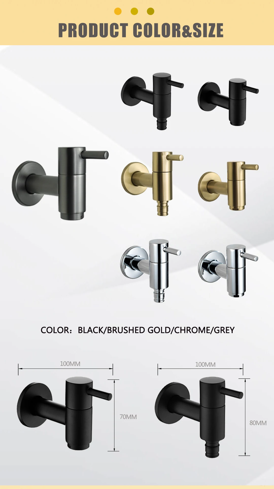 - Color: Chrome / Matt Black / Brushed Gold / Grey