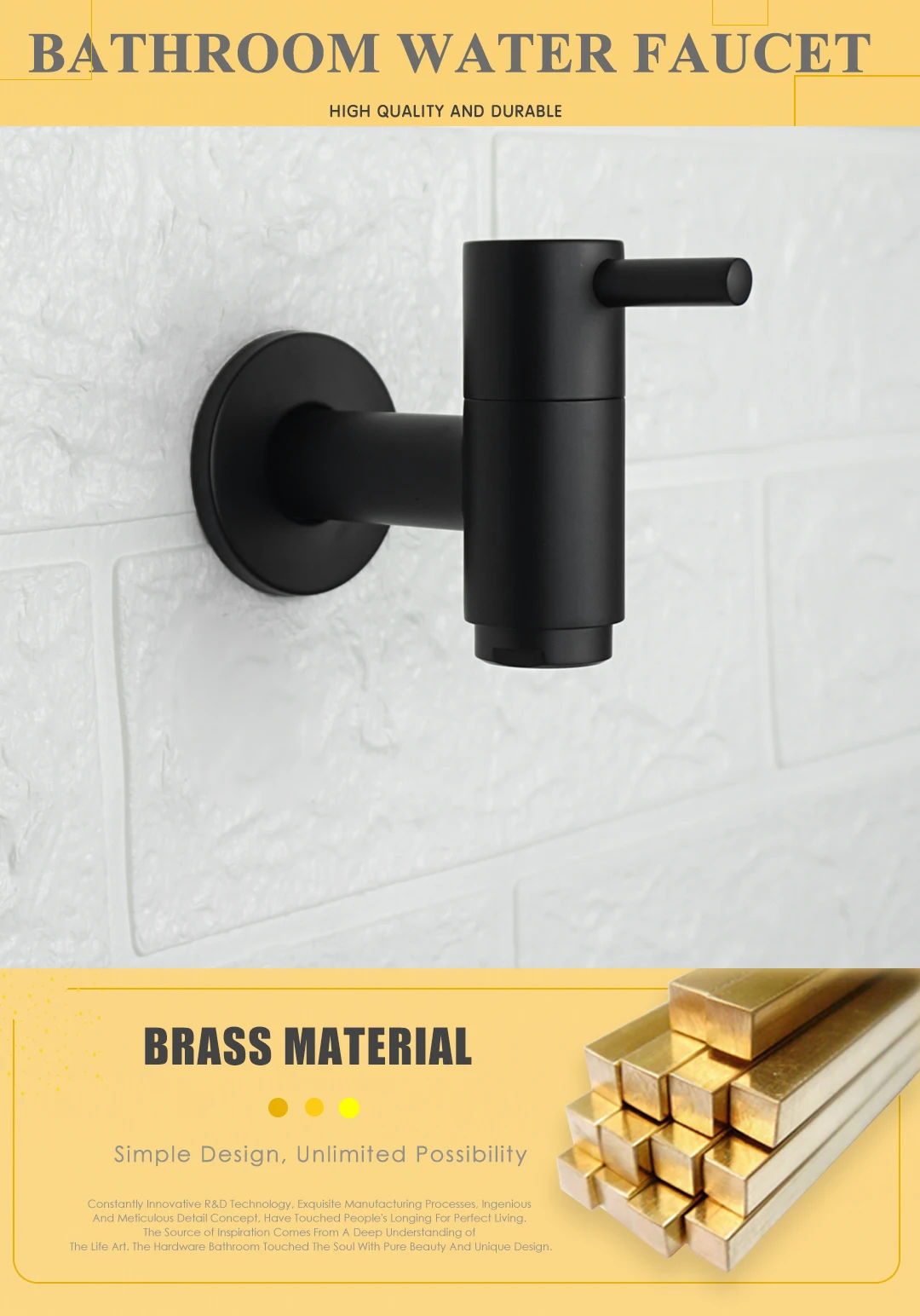 Robinet de Machine à laver en laiton noir, robinet mural simple froid G1/2, robinet de piscine, jardin extérieur, salle de bains, cuisine