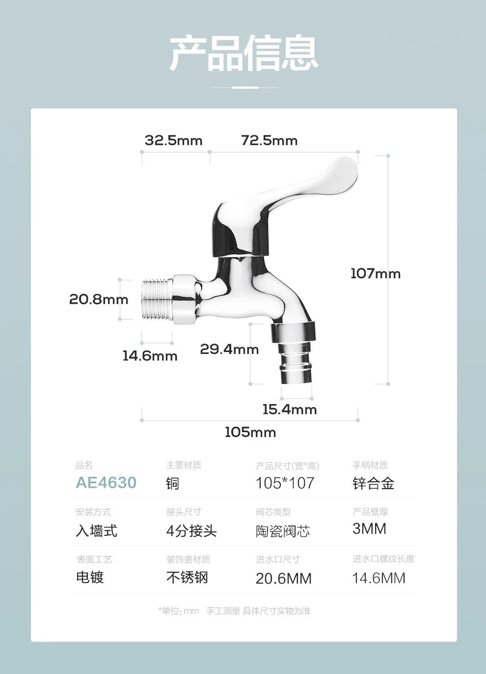 - Specifications: Alloy washing machine faucet