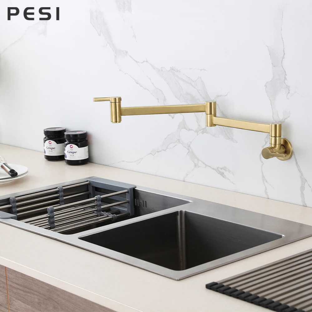 Laiton Double Interrupteur Bassin Robinet Cuisine Mur Monté Robinet De Cuisine Évier Extension Robinet De Remplissage Robinet Rotation Bec Pliant Noir
