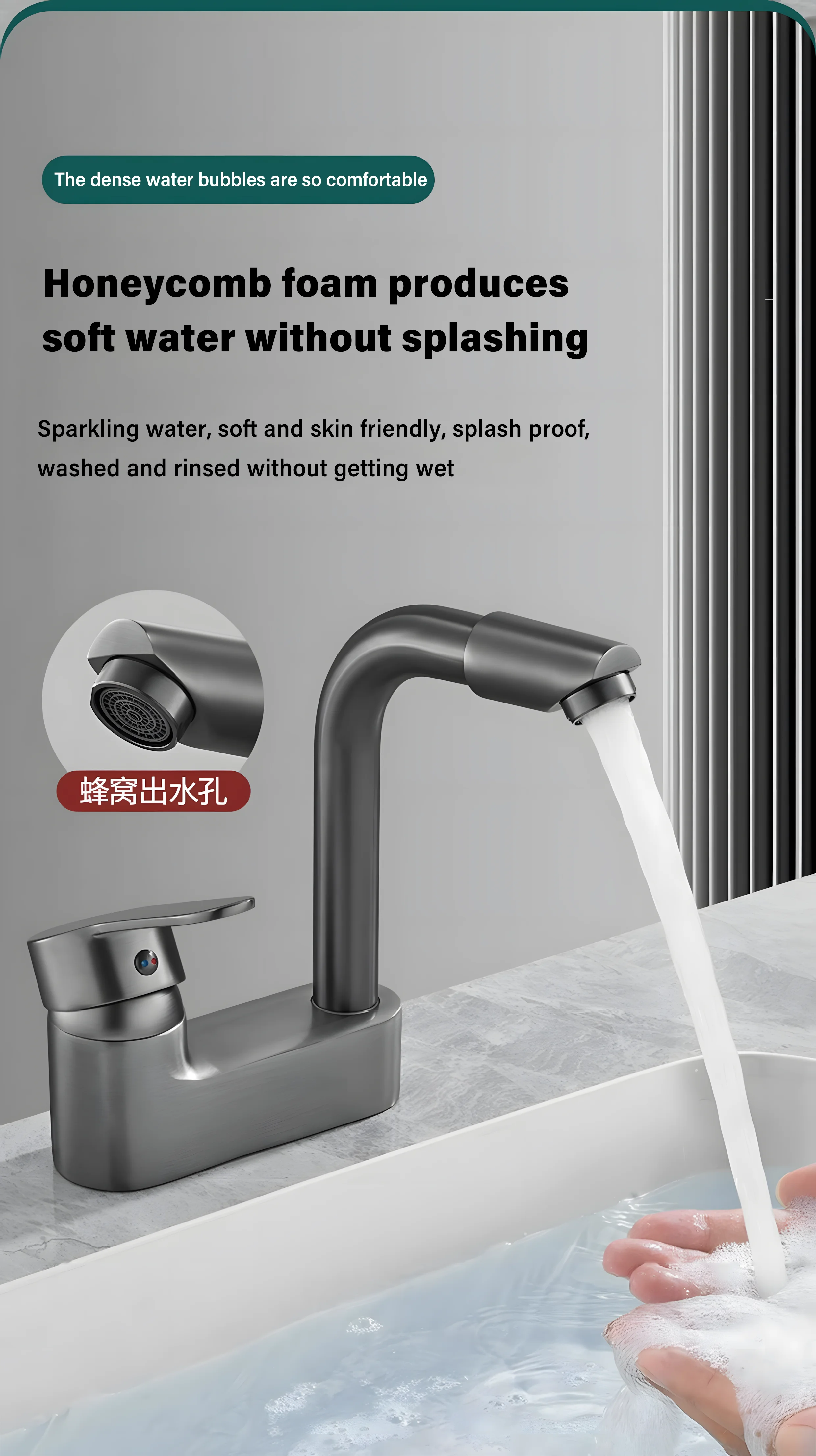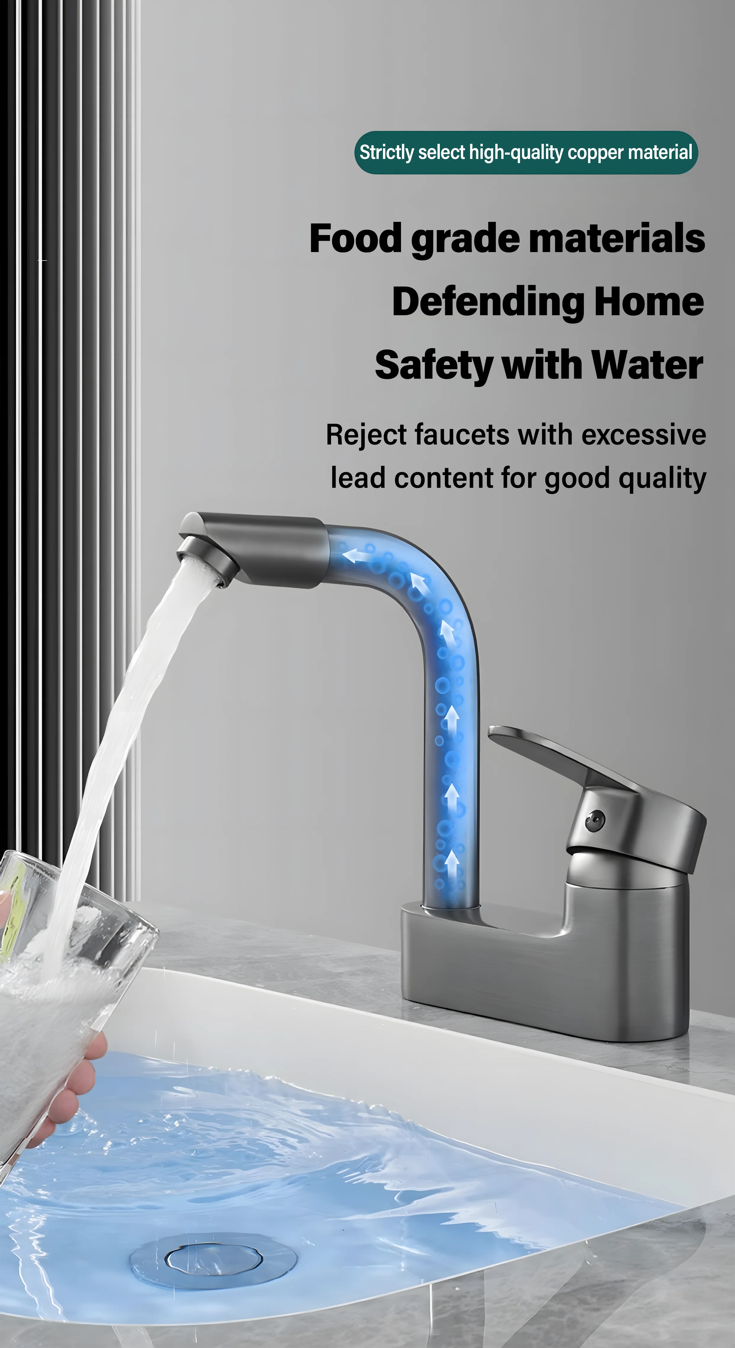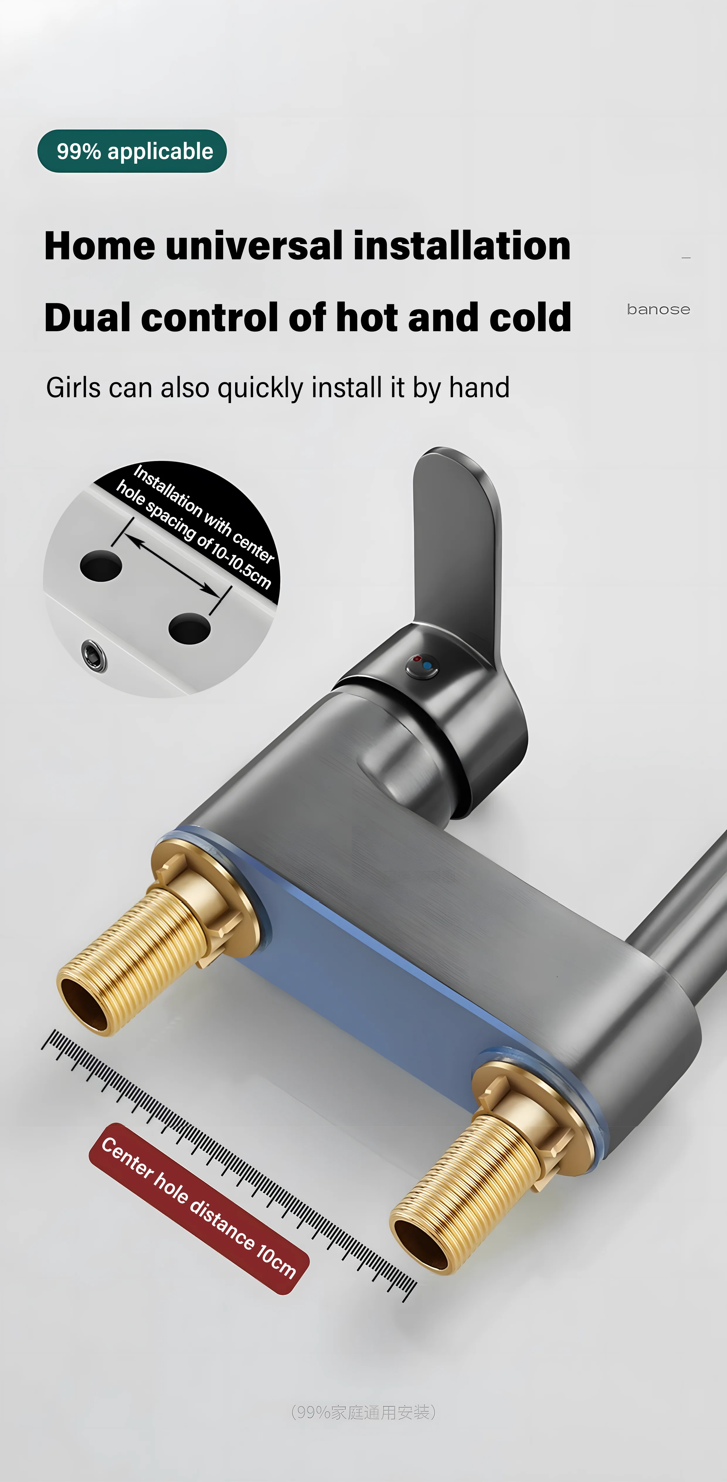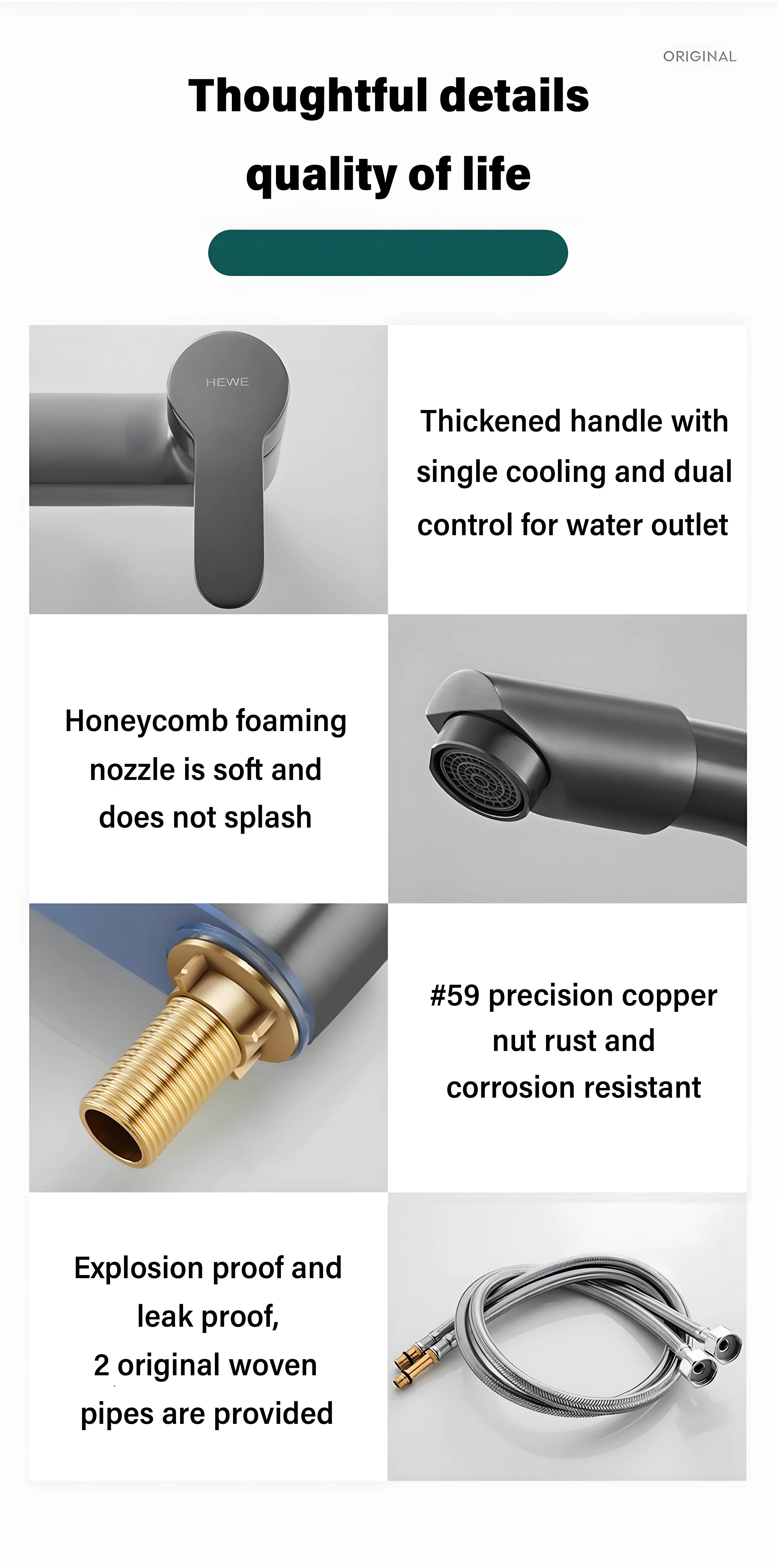Équipé d’un noyau de valve en céramique de haute qualité, assurant un débit d’eau fluide et une longévité.