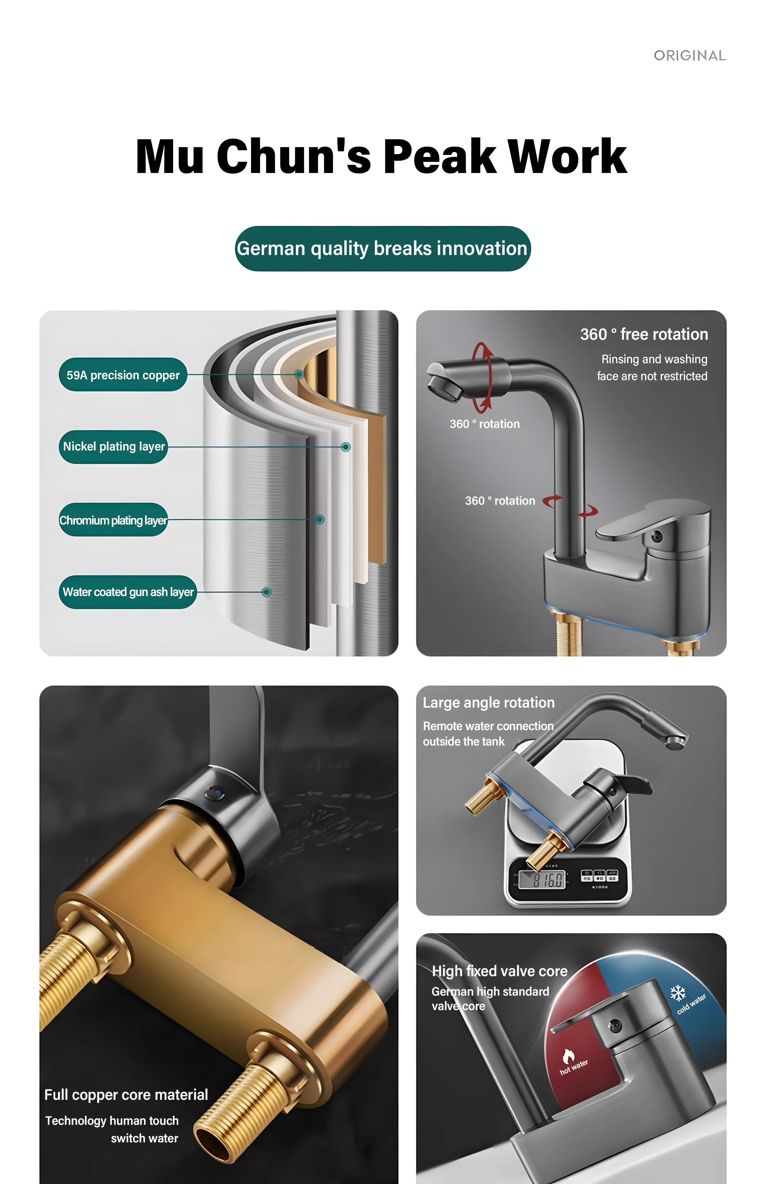 Fabriqué en laiton durable, ce robinet promue la navigation dentaire et une sensation premium.