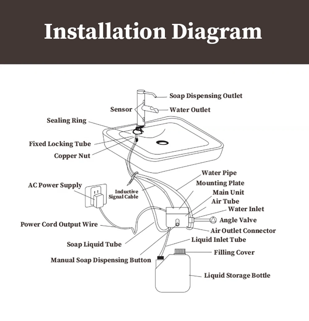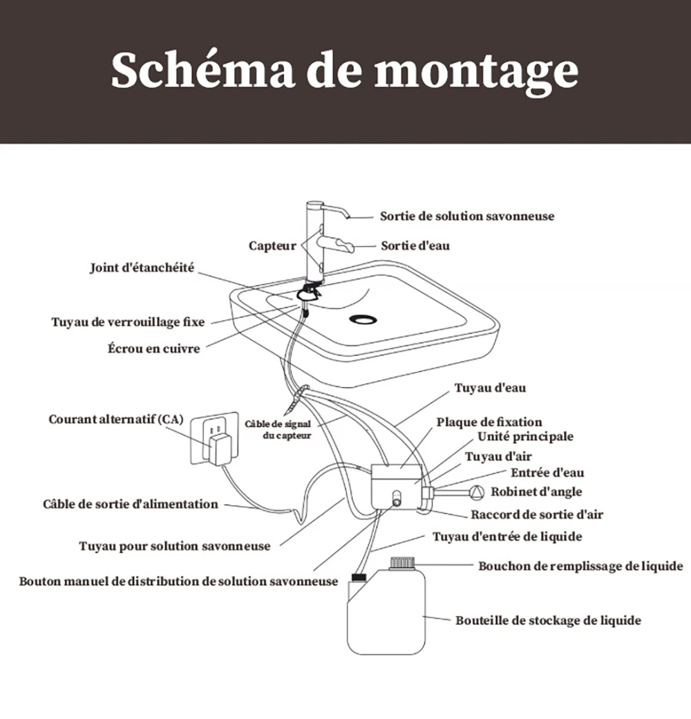 Nom : robinet de lavabo de salle de bain à capteur intelligent (avec distributeur de savon inductif).