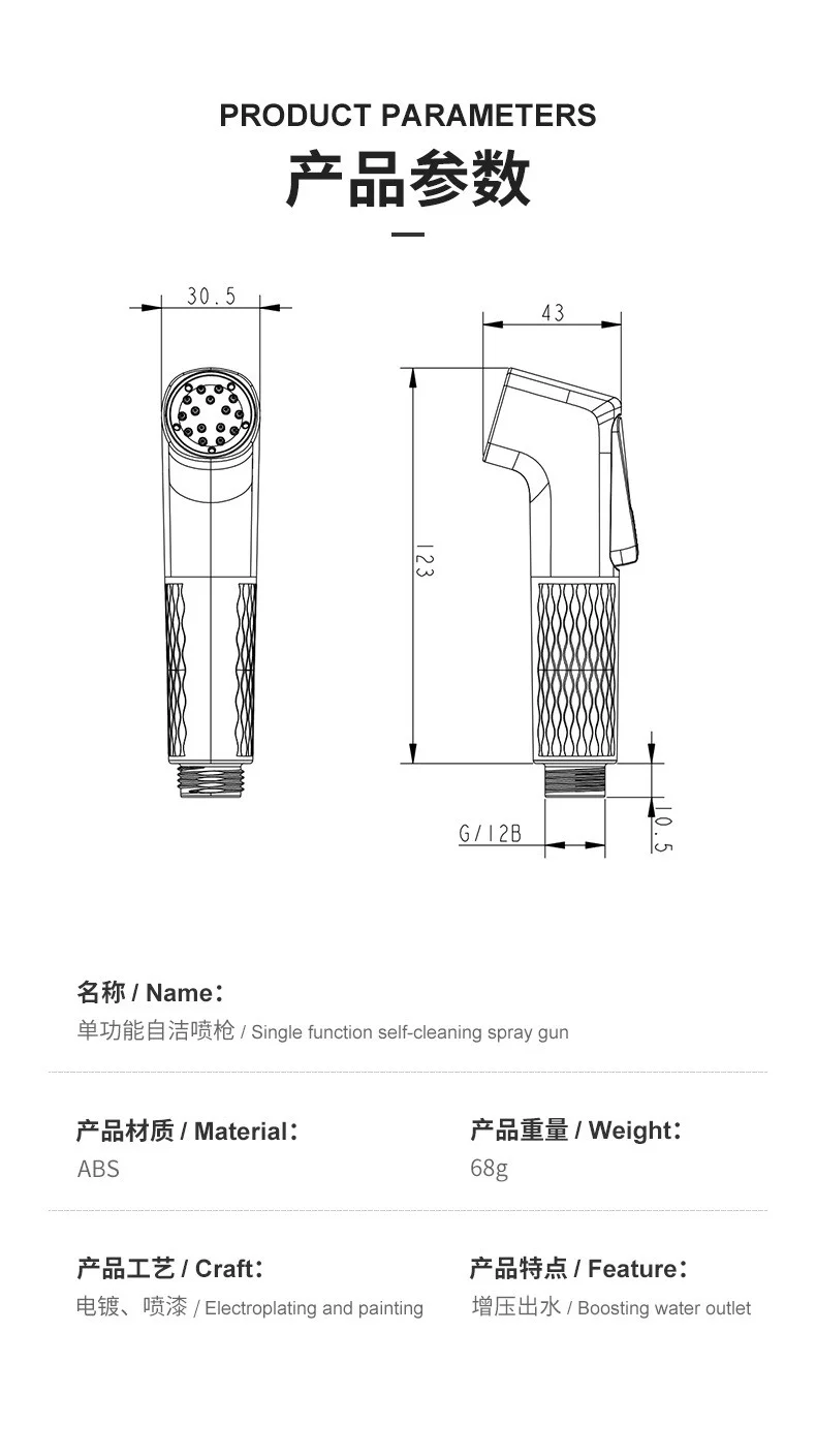 Brushed Rose Gold ABS Plastic Bath Faucet Single Cold Water Toilet Shower Kit Sanitary Spray round Bathroom Accessory