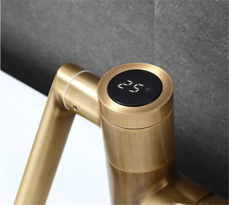 Robinet de salle de bains Antique, affichage numérique Intelligent, robinet de lavabo LED, mélangeur chaud et froid, robinet de lavabo en laiton pour salle de bains