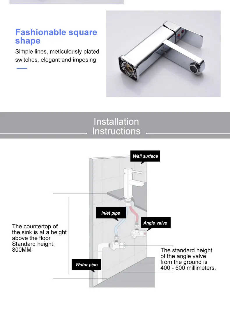 Décharge d’eau douce : barboteur en nid d’abeille en maille, l’eau du robinet est filtrée à travers plusieurs couches sans éclaboussures. Interrupteur marche/arrêt de commande ergonomique qui pousse vers le haut pour distribuer de l’eau. Peut être connecté à une seule entrée ou deux entrées, à l’eau chaude à gauche, à l’eau froide à droite, pratique à utiliser. Robinet de salle de bain à poignée unique et monotrou.