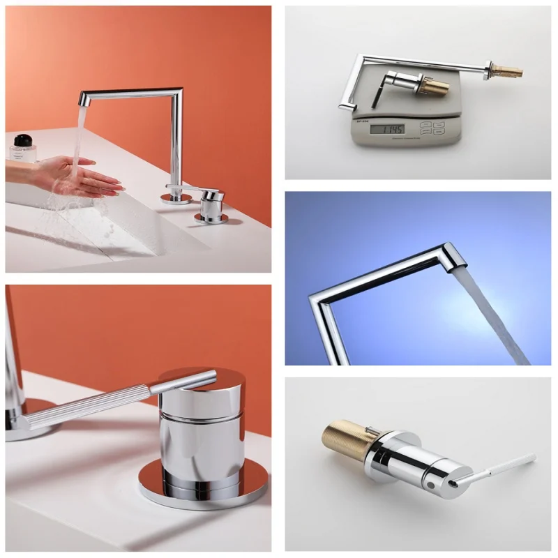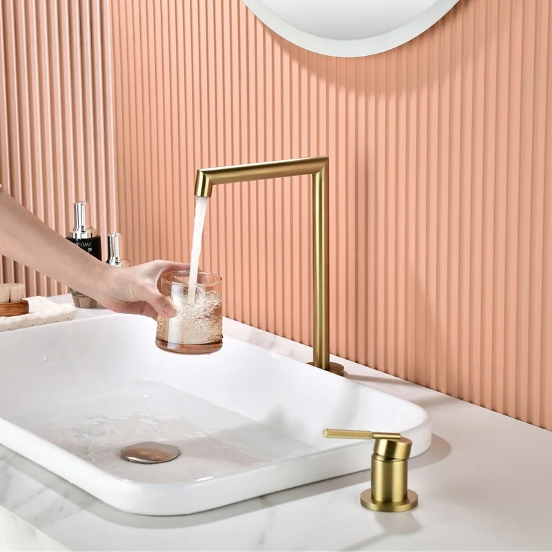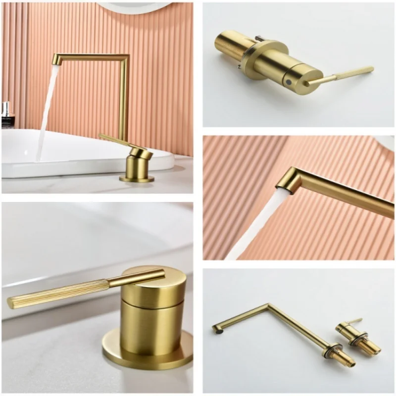 Robinet de salle de bains en laiton brossé doré, robinet de lavabo en Nickel brossé, gris chaud et froid/Chrome, robinet d’évier à 2 trous répandu