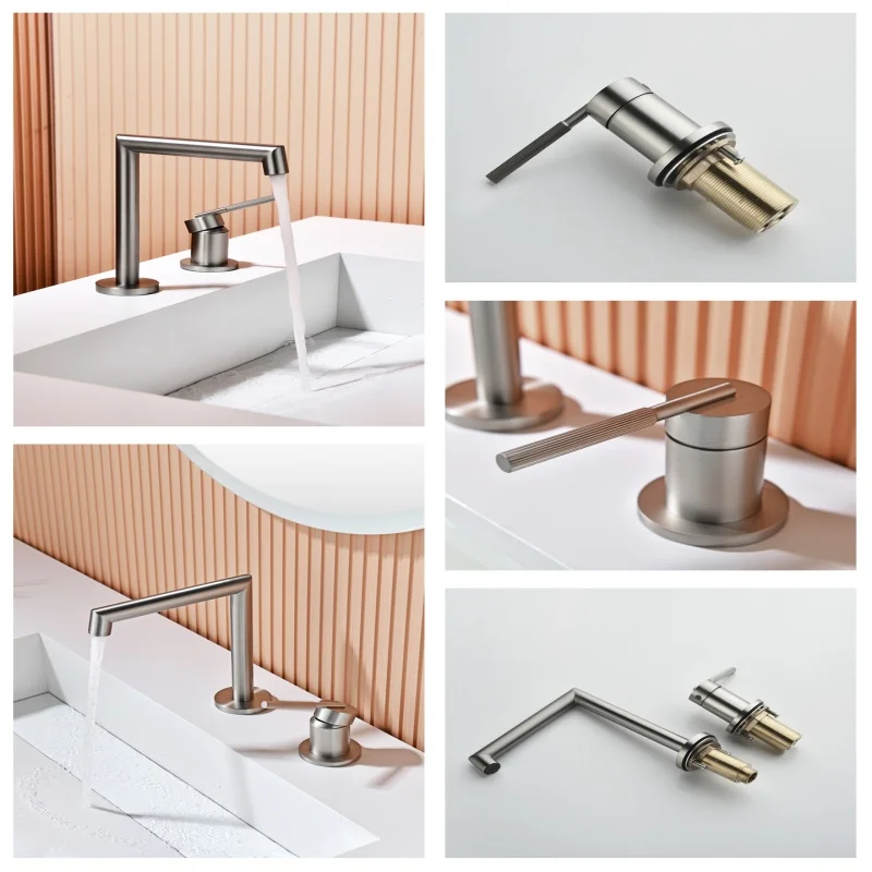 Robinet de salle de bains en laiton brossé, robinet de lavabo en Nickel brossé, gris chaud et froid/Chrome, robinet d’évier à 2 trous généralisé