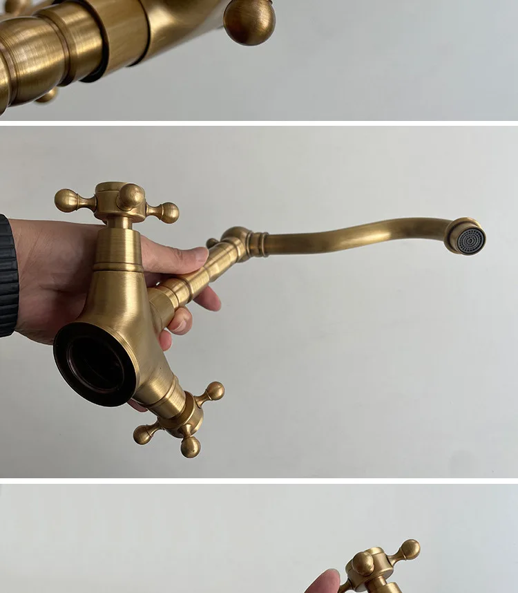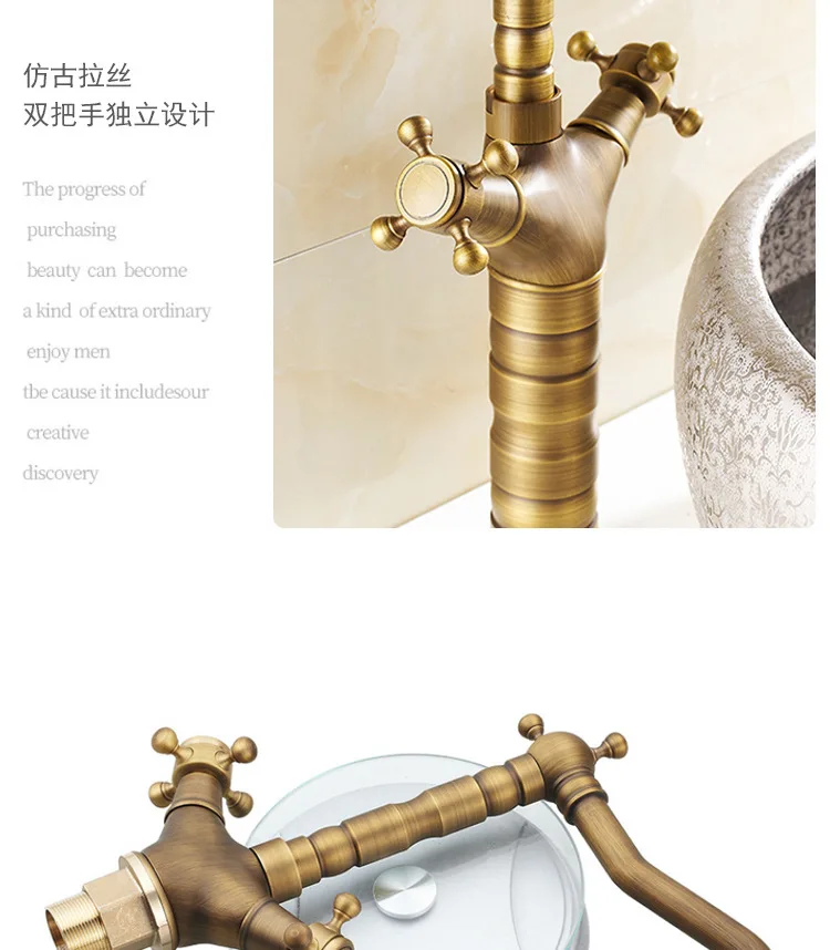 Robinet de salle de bains européen rétro en laiton, robinet de lavabo à double poignée, lavabo de table domestique, robinet chaud et froid rotatif G3/8G1/2 |