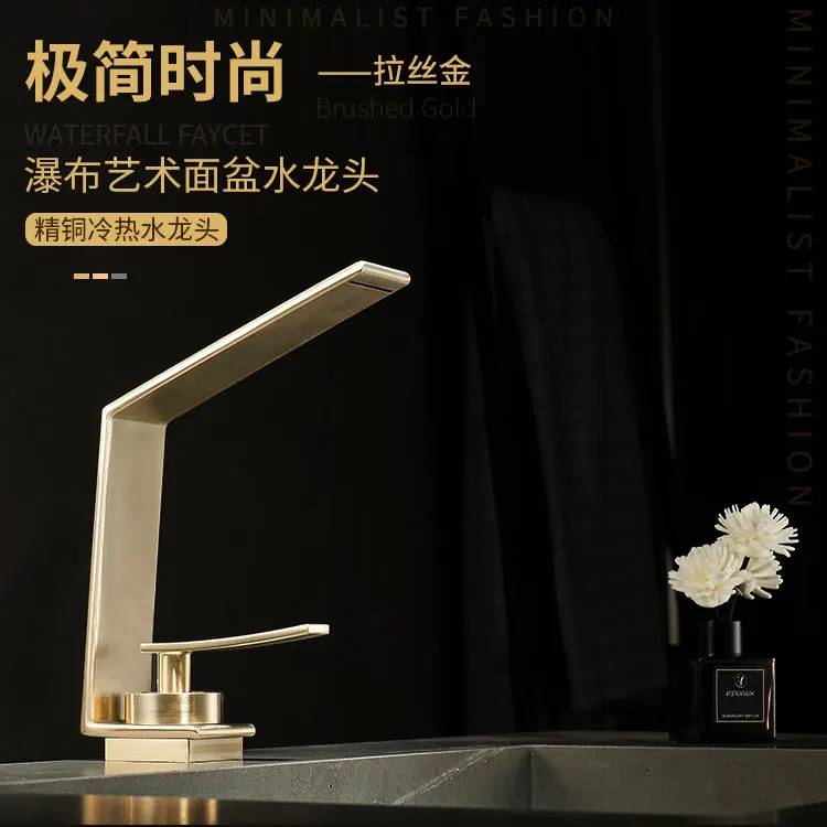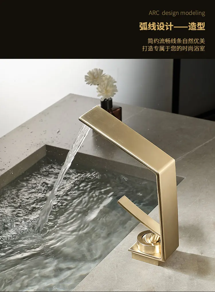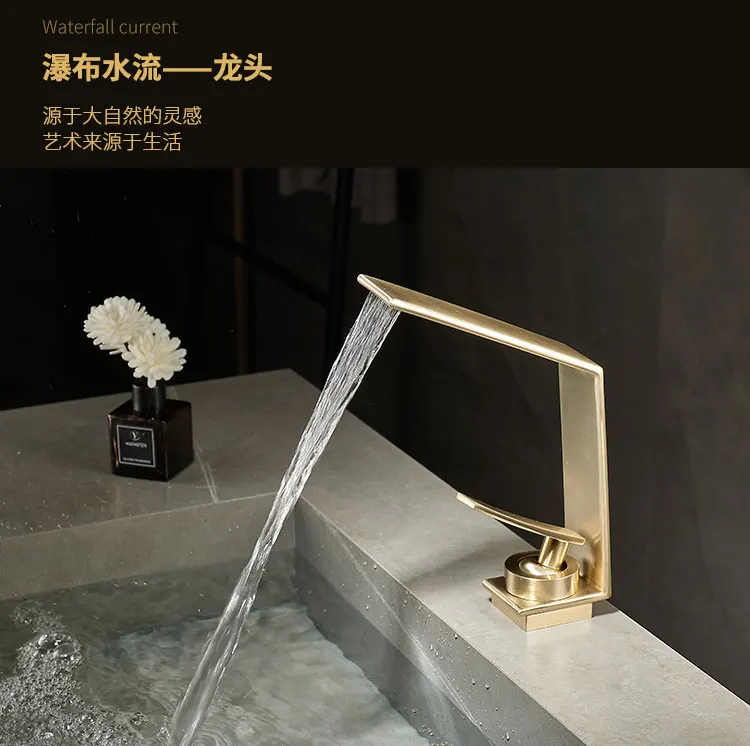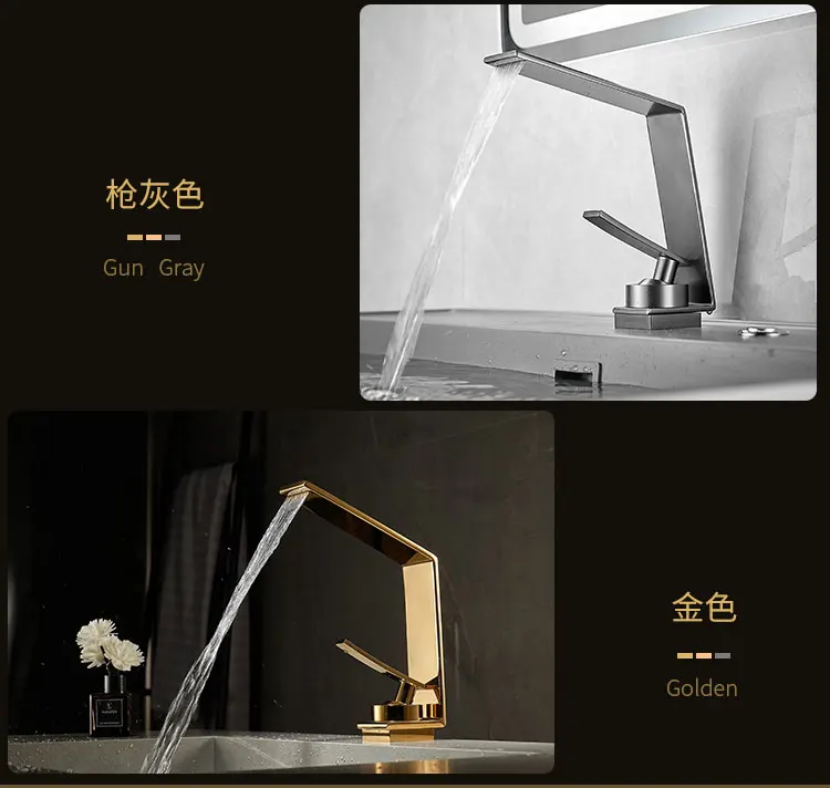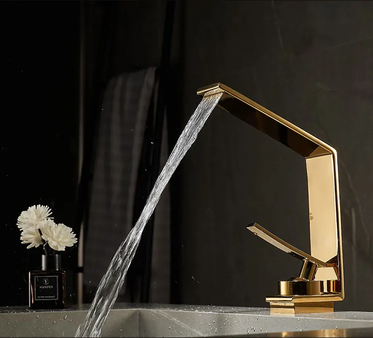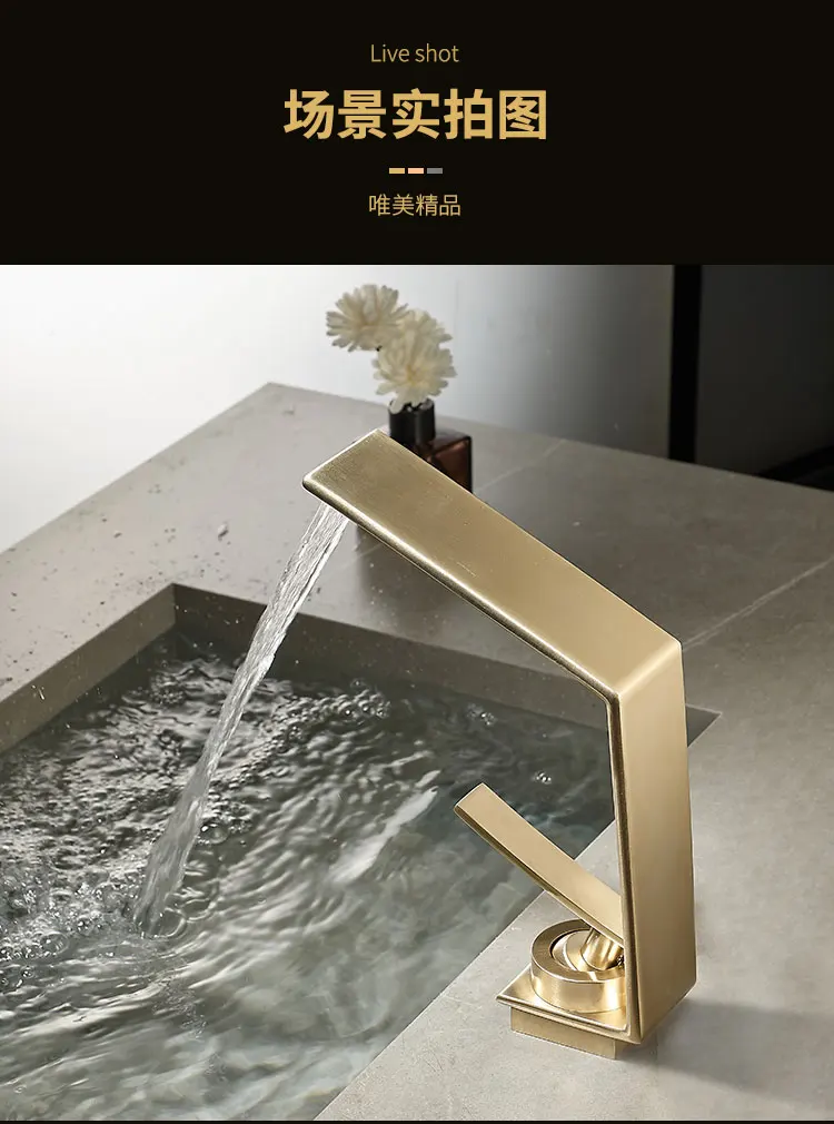 Robinet de salle de bains léger de luxe Rush, lavabo doré, robinet d'évier, lavabo de toilette, armoire de bain, robinet cascade G3/8G1/2 |