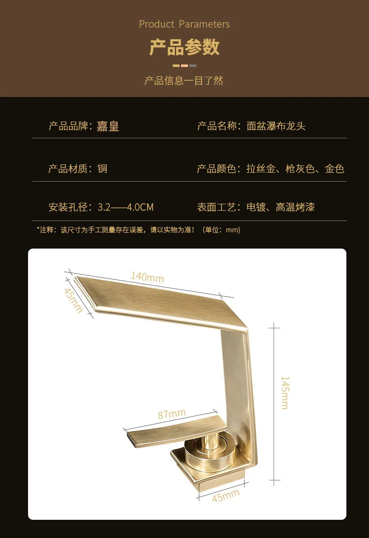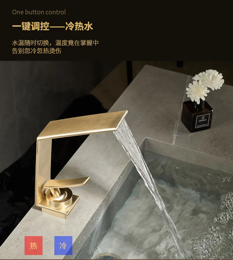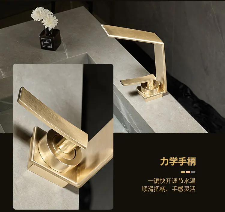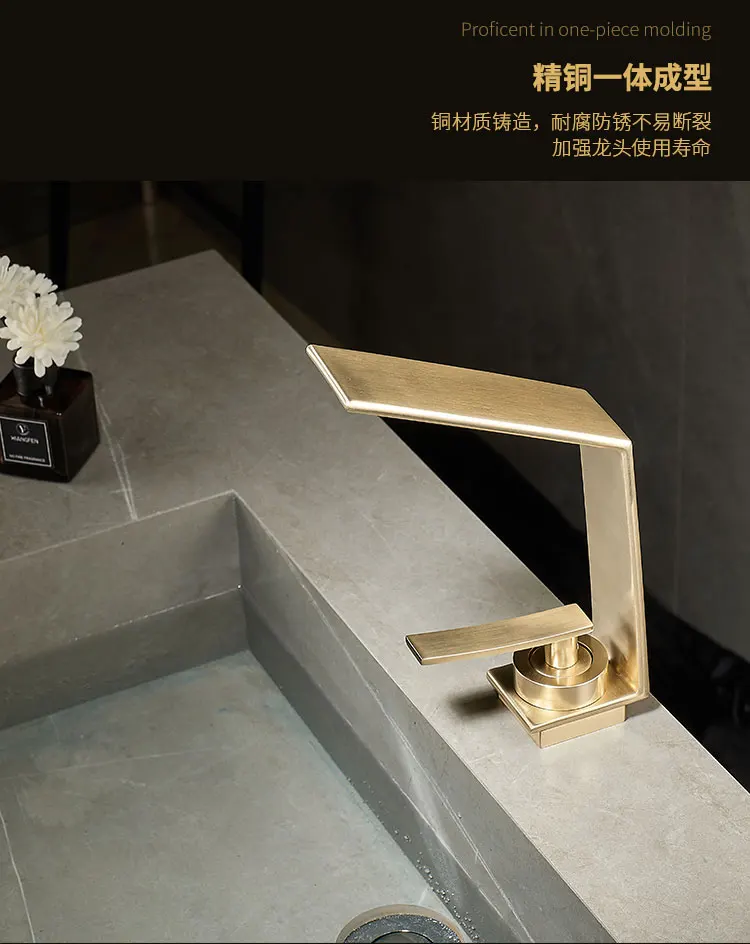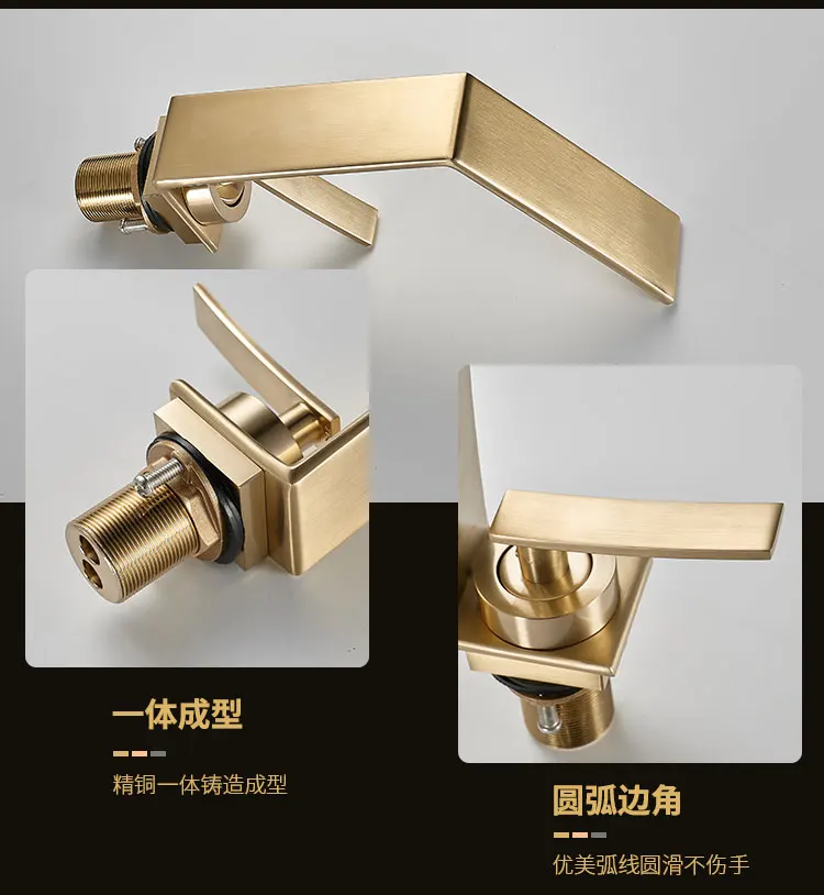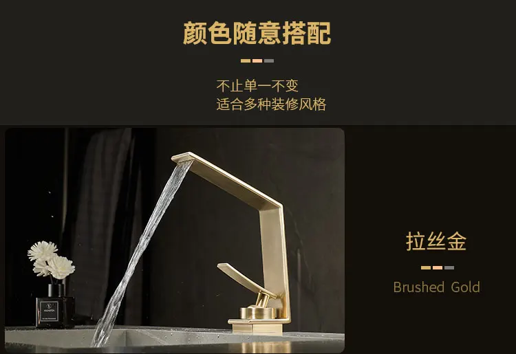 Robinet de salle de bains léger de luxe Rush, lavabo doré, robinet d'évier, lavabo de toilette, armoire de bain, robinet cascade G3/8G1/2 |