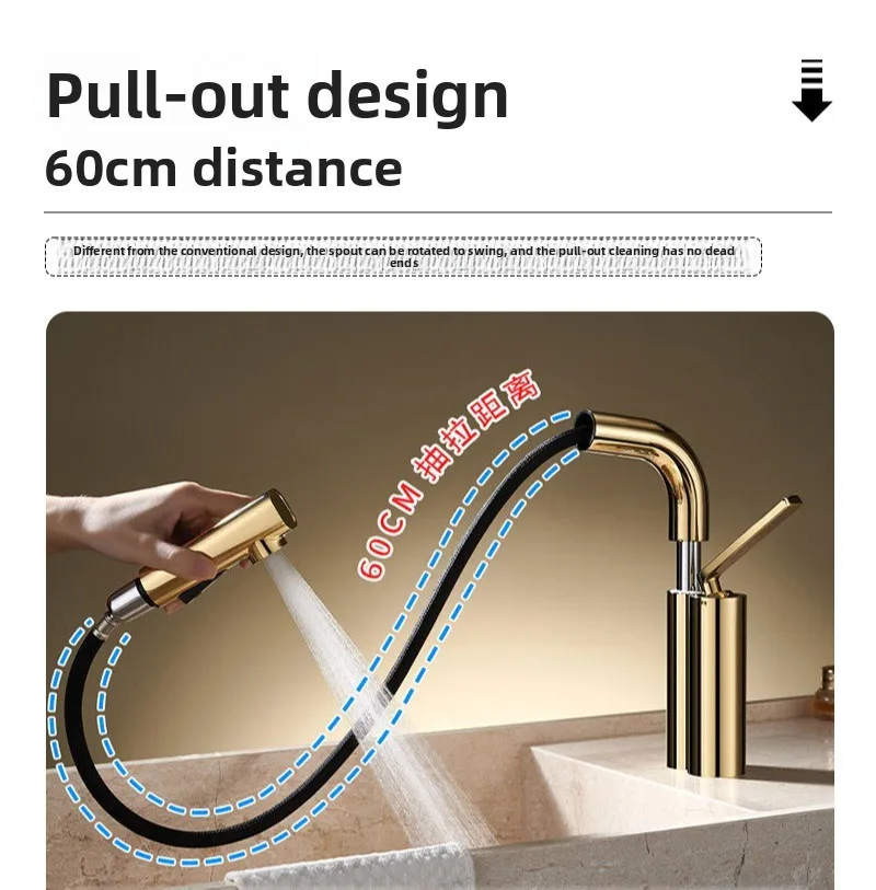 Robinet de salle de bains multifonctionnel à levage extractible, toilettes chaudes et froides, lavabo, robinet anti-éclaboussures |