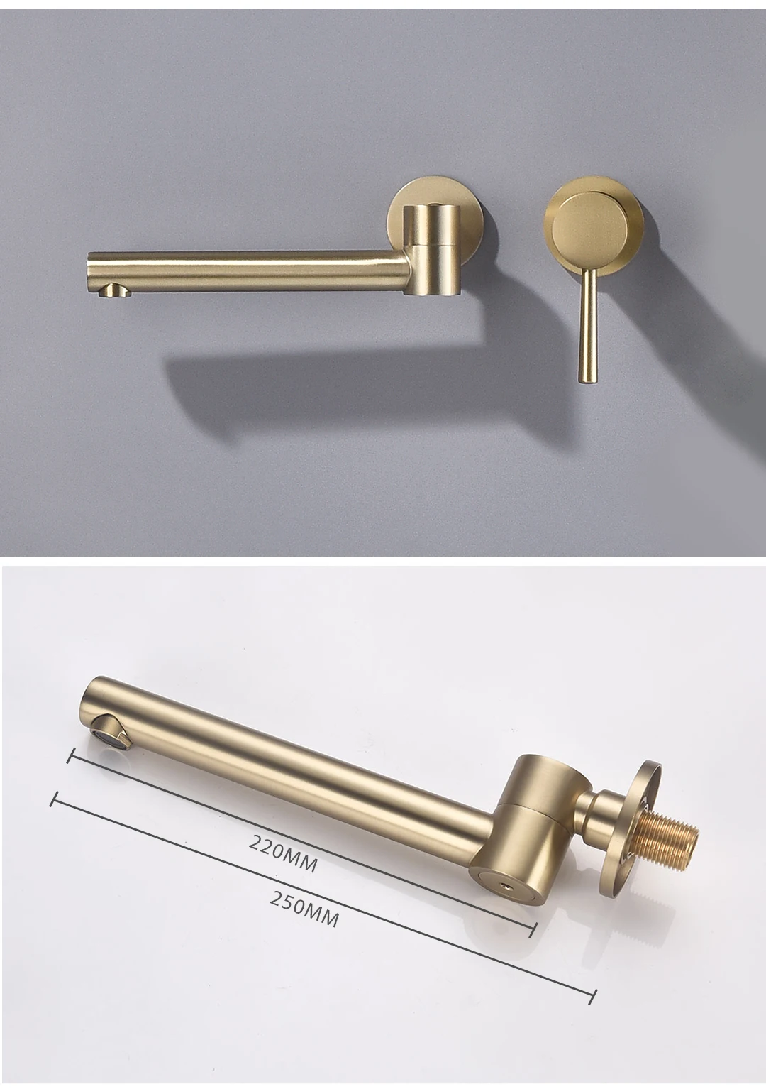 Robinet de salle de bain mural – Robinet mitigeur d’eau chaude et froide moderne à poignée à levier unique avec bec pivotant pour lavabo et bain.
