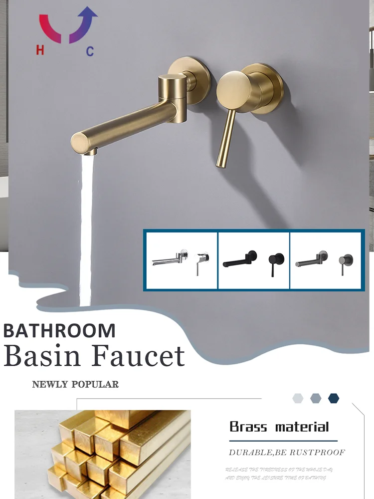 Robinet de salle de bains mural-robinet mitigeur d’eau chaude et froide à poignée unique moderne avec bec pivotant pour lavabo et bain