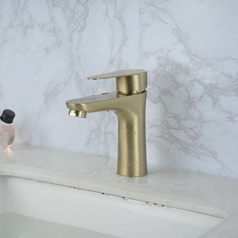 Or brossé/peinture noir robinet d’évier de lavabo en acier inoxydable robinet de vanité monté sur le pont mitigeur un trou eau chaude froide mitigeur