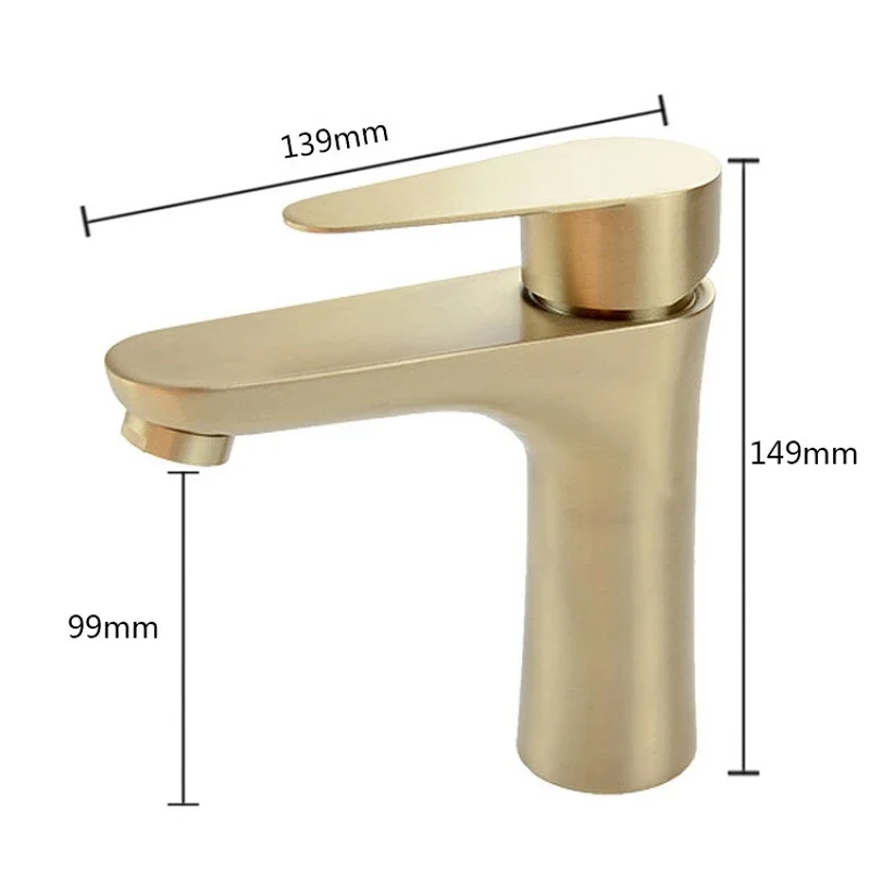 Robinet d’évier de salle de bain en or brossé Robinet d’eau de cuvette de navire à montage sur pont Mitigeur de lavabo en acier inoxydable à poignée unique Mélangeur chaud et froid
