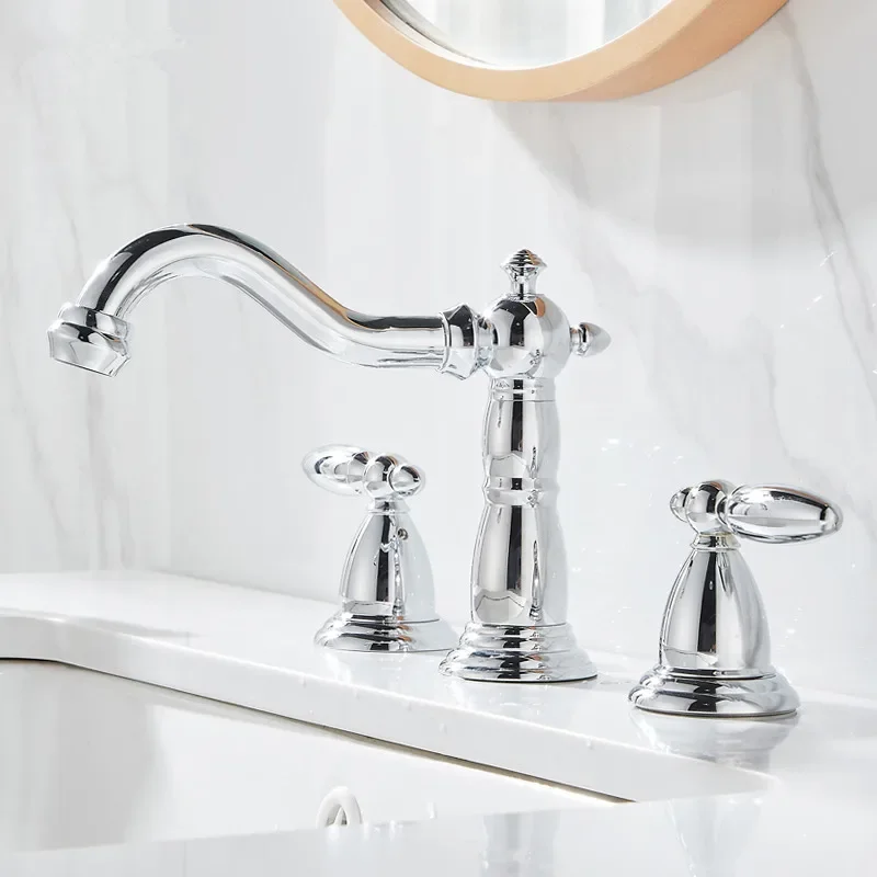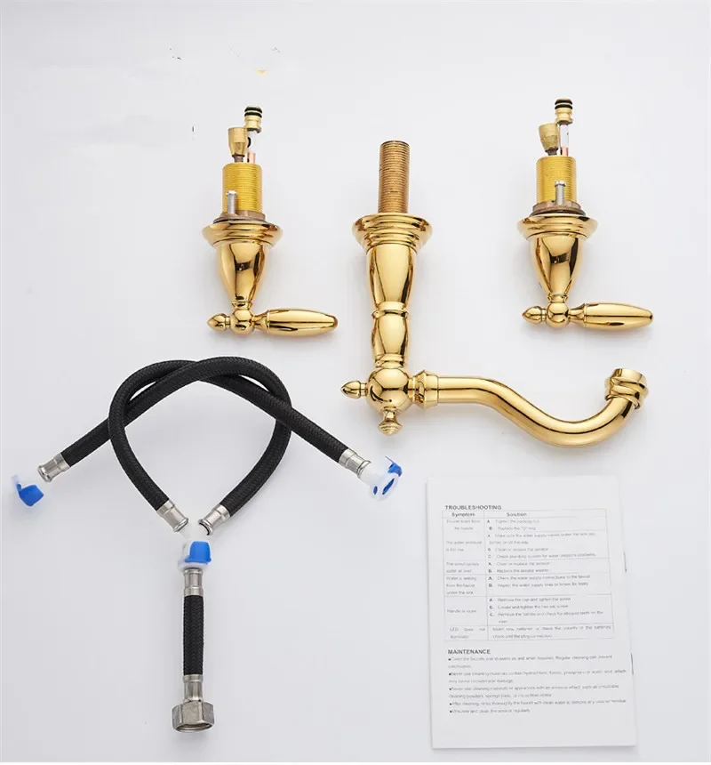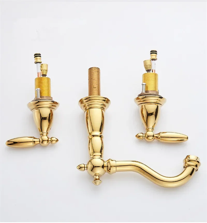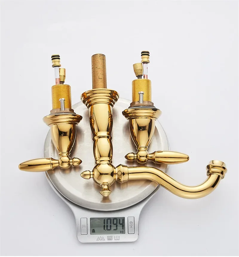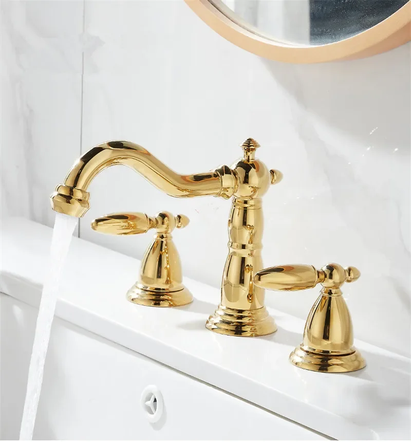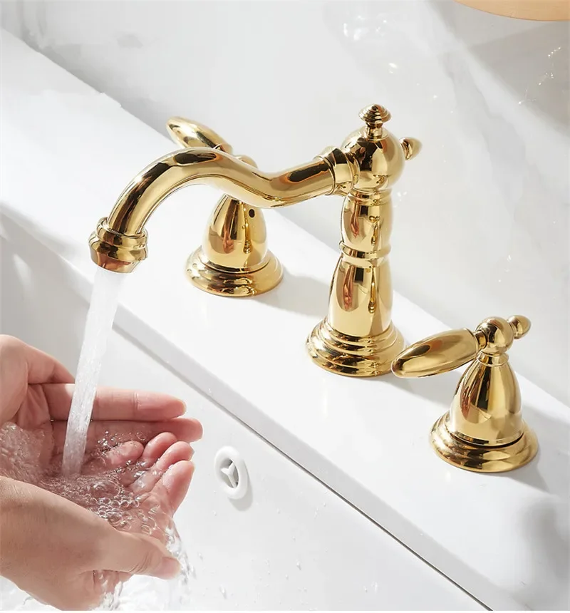 Tuqiu Bassin Robinet En Laiton Or Répandu Robinet De Salle De Bains Antique Évier Robinets 3 Trous Eau Chaude Et Froide Robinet Robinet Pop Up