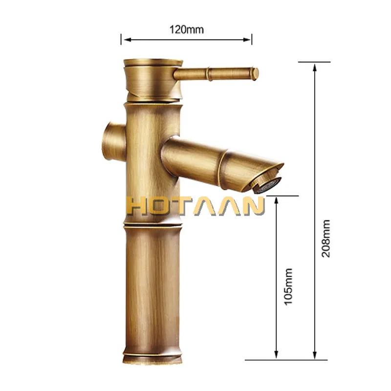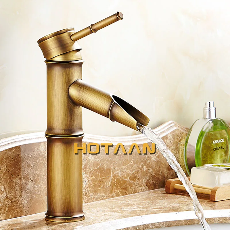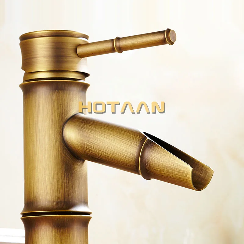 Robinet de lavabo en laiton Antique en forme de bambou, finition bronze Antique, robinet d’évier en cuivre à poignée unique, robinet d’eau chaude et froide
