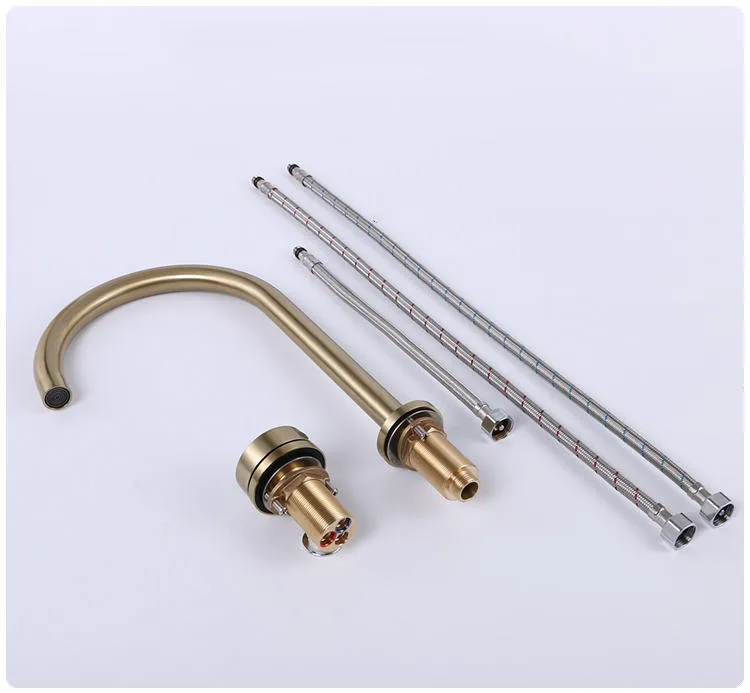 New Arrival basin faucet hot and cold bathroom widespread sink faucet Black Brush gold single lever