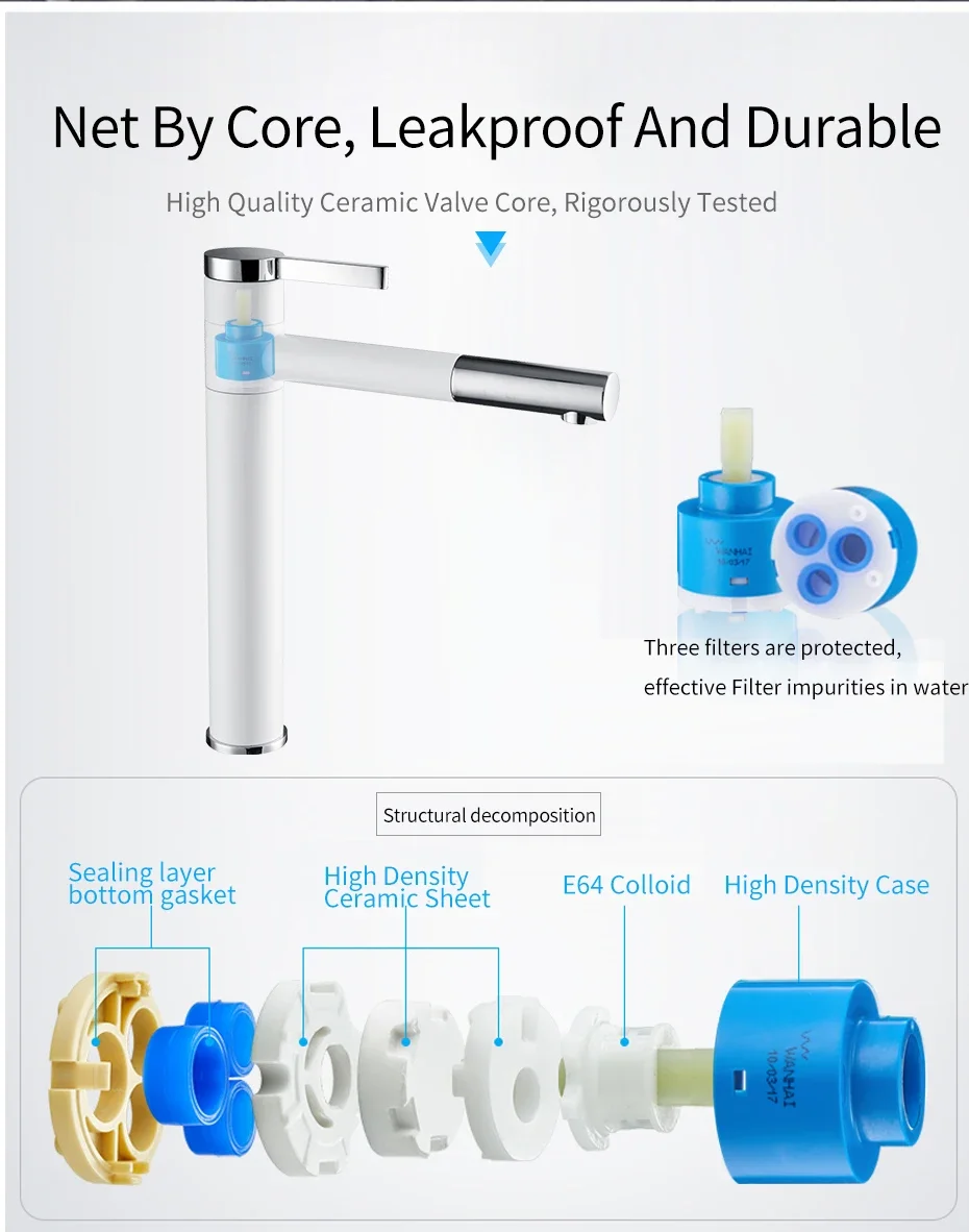 Robinets de lavabo Robinet de salle de bains en laiton Lavabos Mélangeur Robinet de vanité Bec pivotant Robinet de lavabo de couleur blanche monté sur le pont