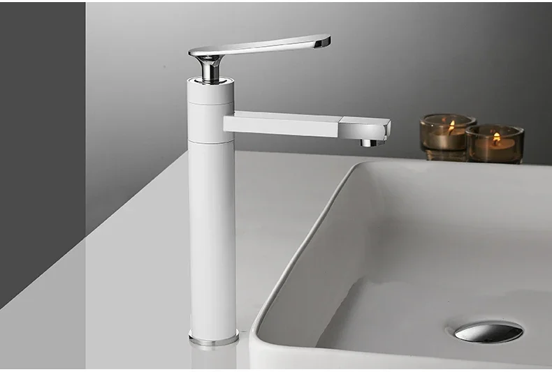 Robinets de lavabo Robinet de salle de bains en laiton Lavabos Mélangeur Robinet de vanité Bec pivotant Robinet de lavabo de couleur blanche monté sur le pont