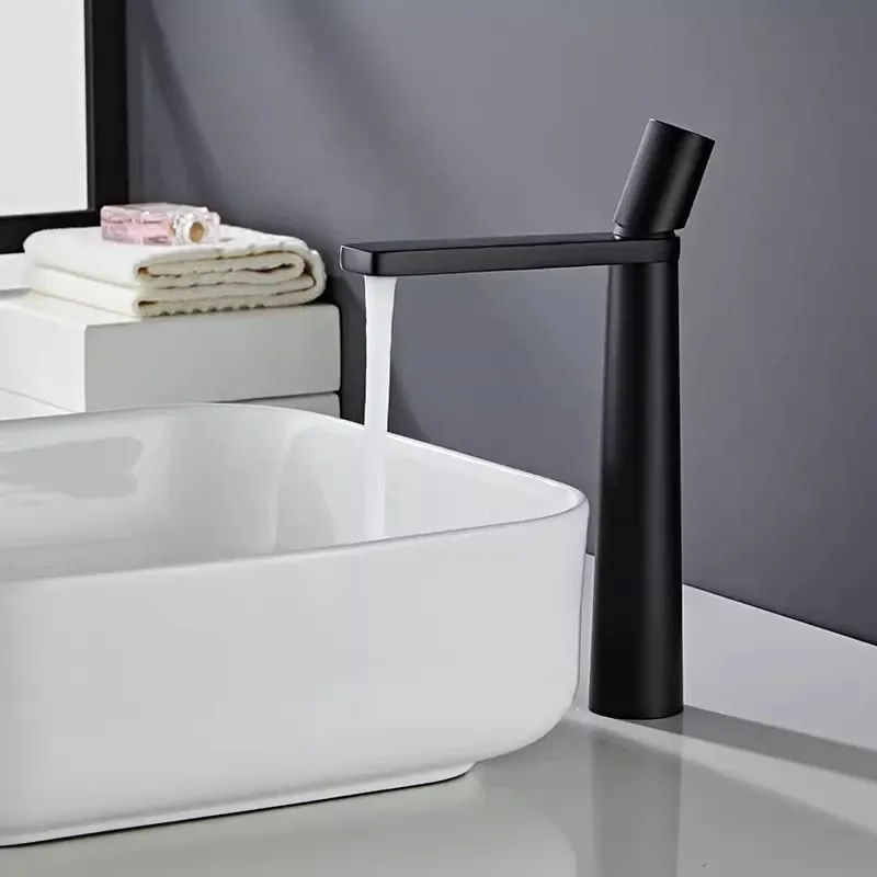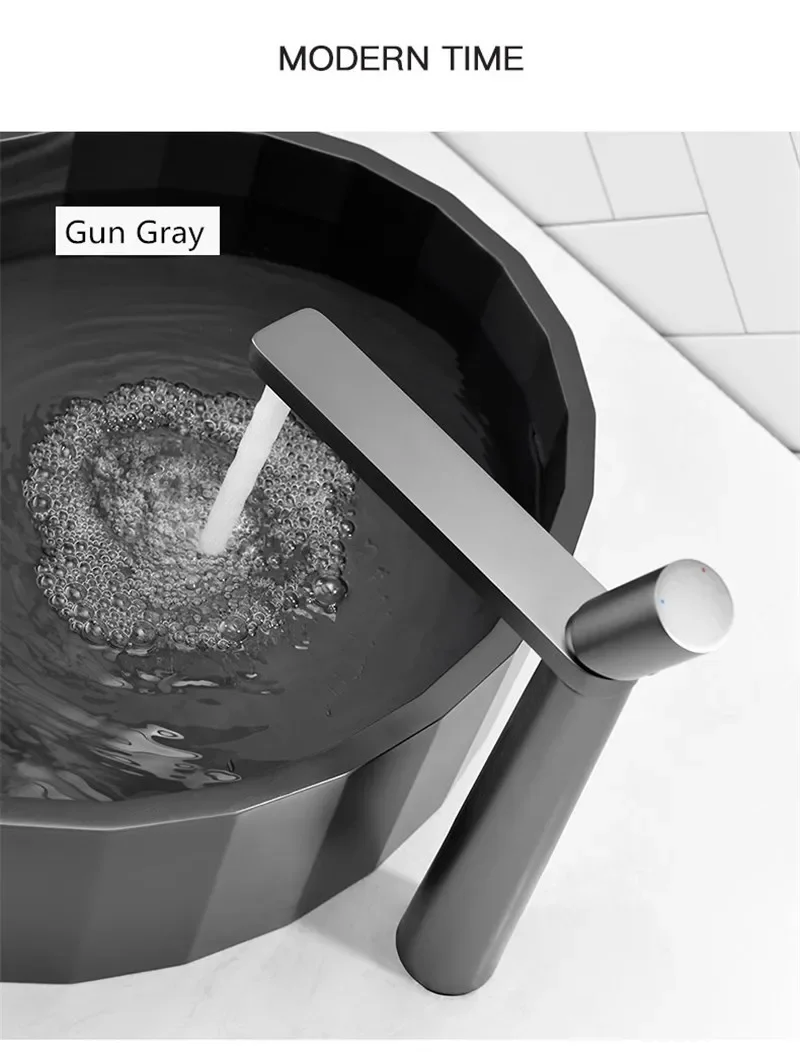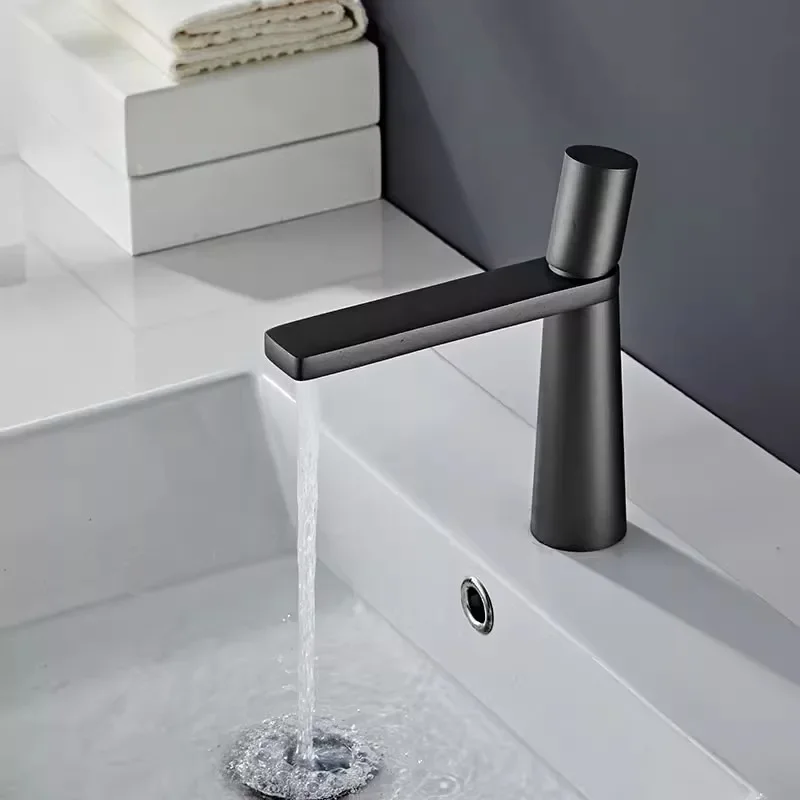 Robinet de salle de bain noir Robinets de lavabo gris Robinet d’évier de salle de bain chaud et froid Robinet de lavabo monté sur le pont Mélangeur Robinet d’eau SS 304