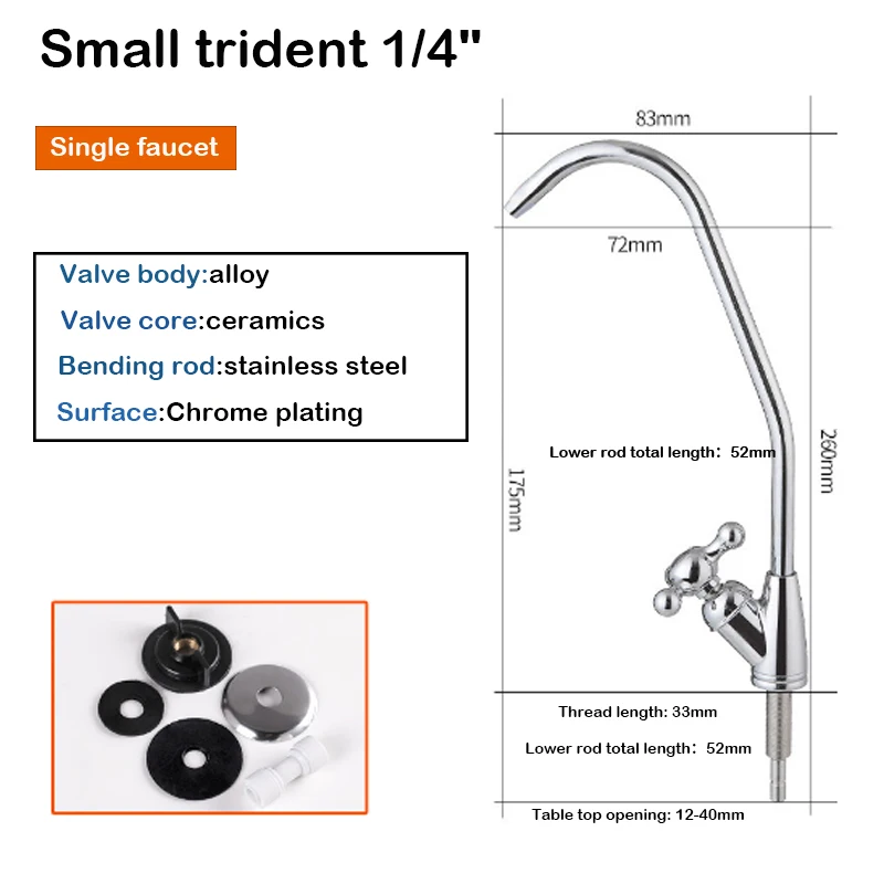 Robinet d’eau de cuisine chromé 1/4 « connexion rapide, robinet à osmose inverse pour purificateur d’eau potable, accessoires de filtre