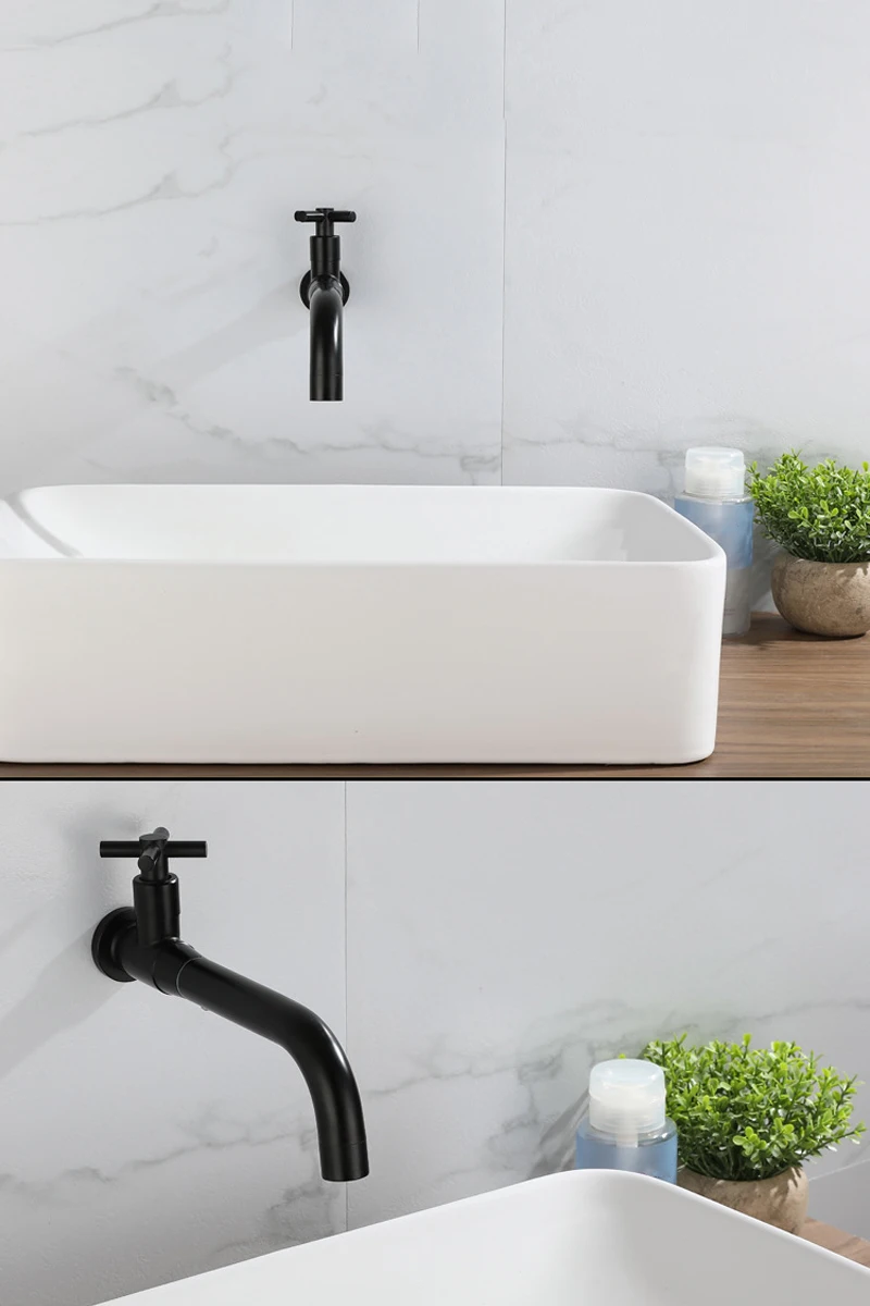 Bassin Évier Robinet Salle De Bains Simple Robinet D’eau Froide Robinet Mural 360 Rotation Avec Mitigeur Noir Or Robinet pour Cuisine Jardin