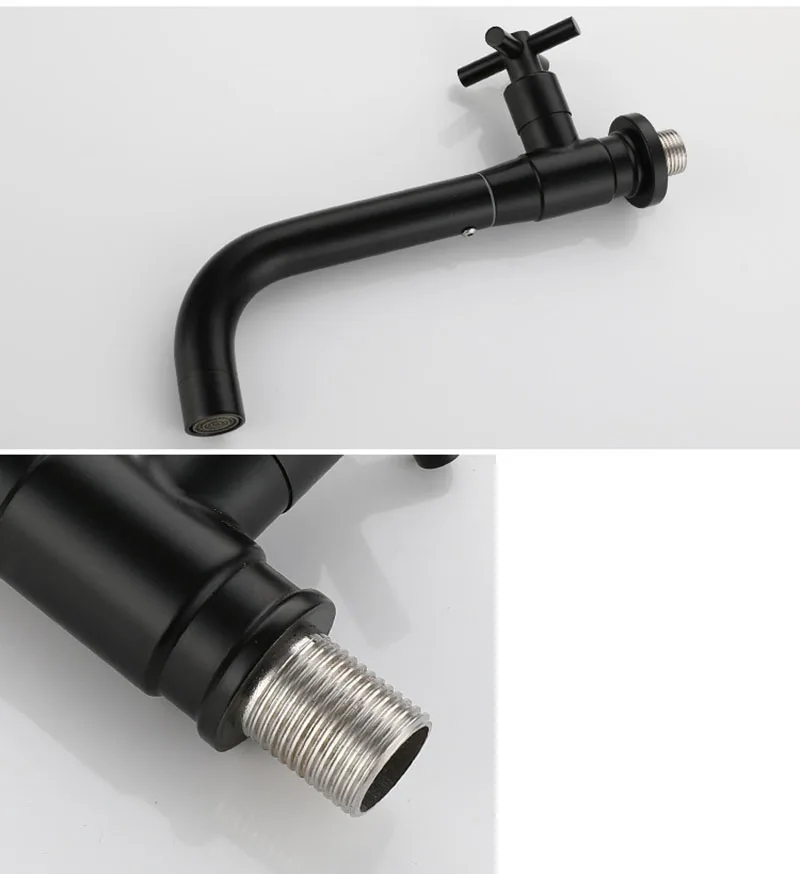 Robinet de lavabo mural en acier inoxydable, robinet d’eau froide unique, lavabo en or brossé, Long bec, bavoir de lavabo, robinet d’évier de vadrouille