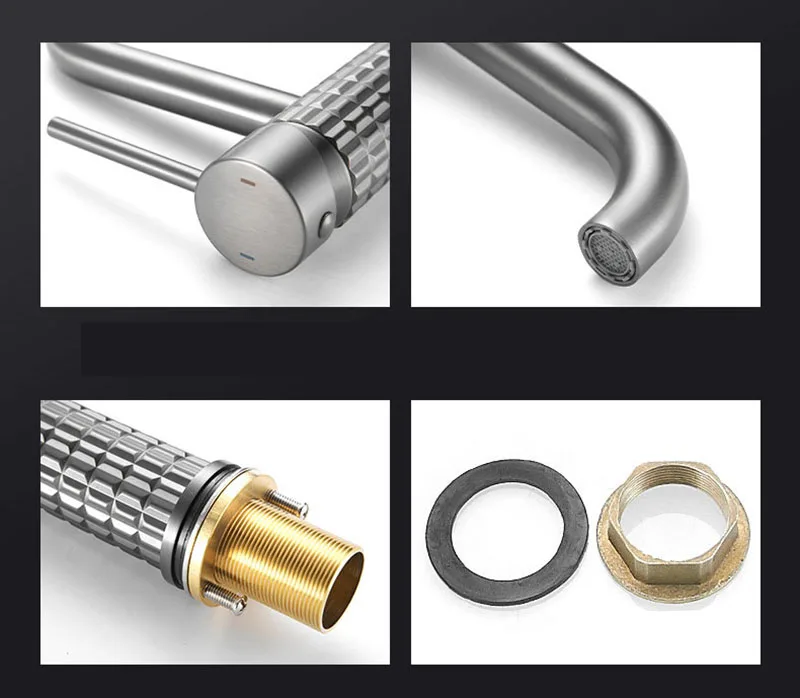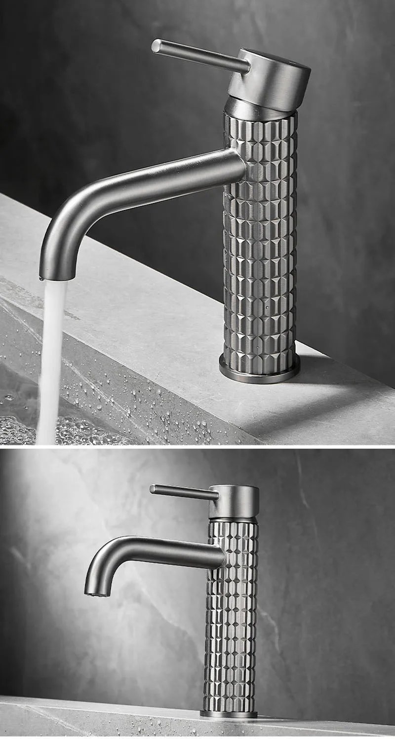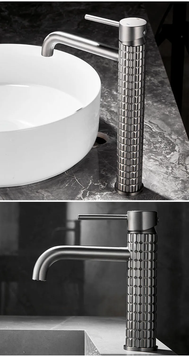 Robinet de lavabo en or brossé Robinets d’évier de salle de bain chauds et froids Robinets de salle de bain de toilette monotrou Robinet d’eau monté sur le pont en laiton