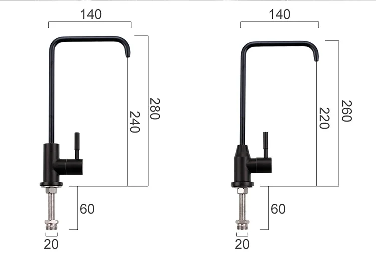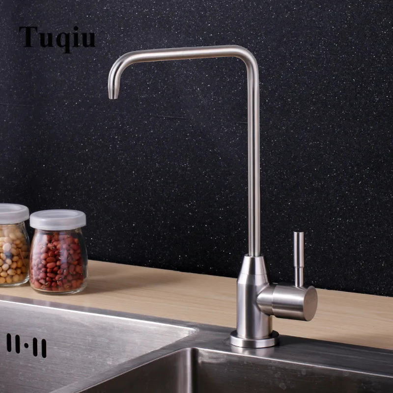 Robinet de cuisine Durable Simple en acier inoxydable noir bassin évier robinet à levier unique eau froide robinet à boire direct