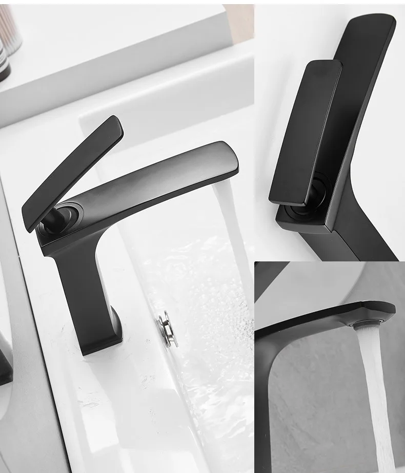 Becola robinet de lavabo noir salle de bains mitigeur d'eau chaude et froide en laiton mitigeur d'évier de lavabo haut/court
