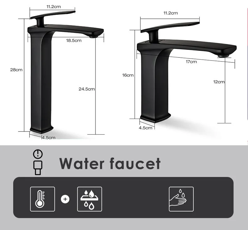Becola robinet de lavabo noir salle de bains mitigeur d’eau chaude et froide en laiton mitigeur d’évier de lavabo haut/court