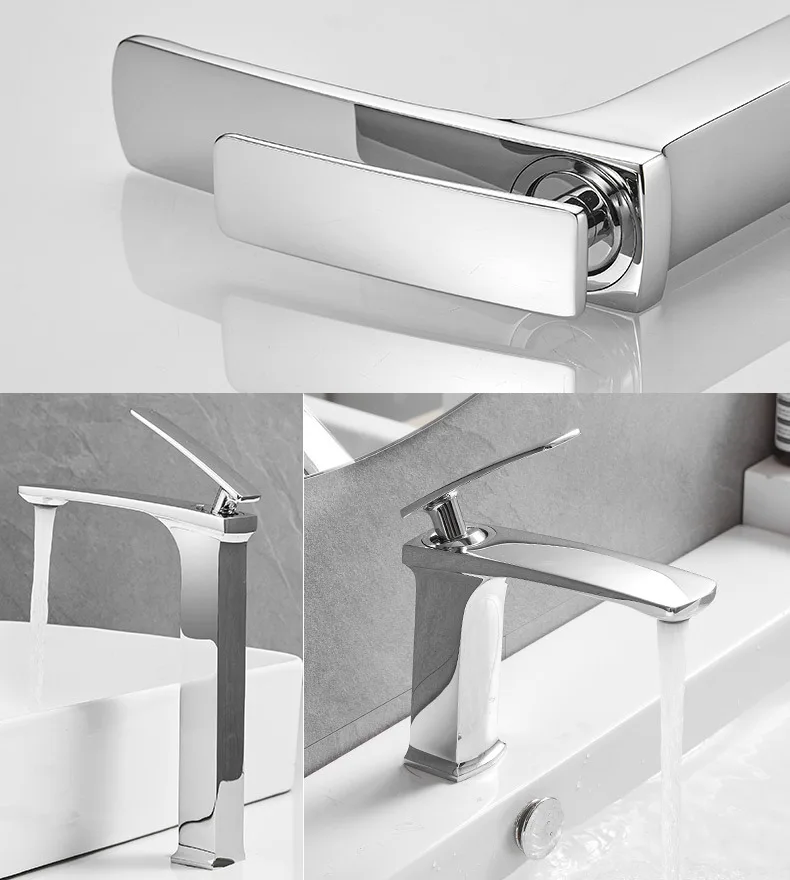 Bassin de Cascade Design HOHollow Out, Robinets de Centre Commercial, Lait Froid et Chaud, Or Blanc, Monotrou Torneira