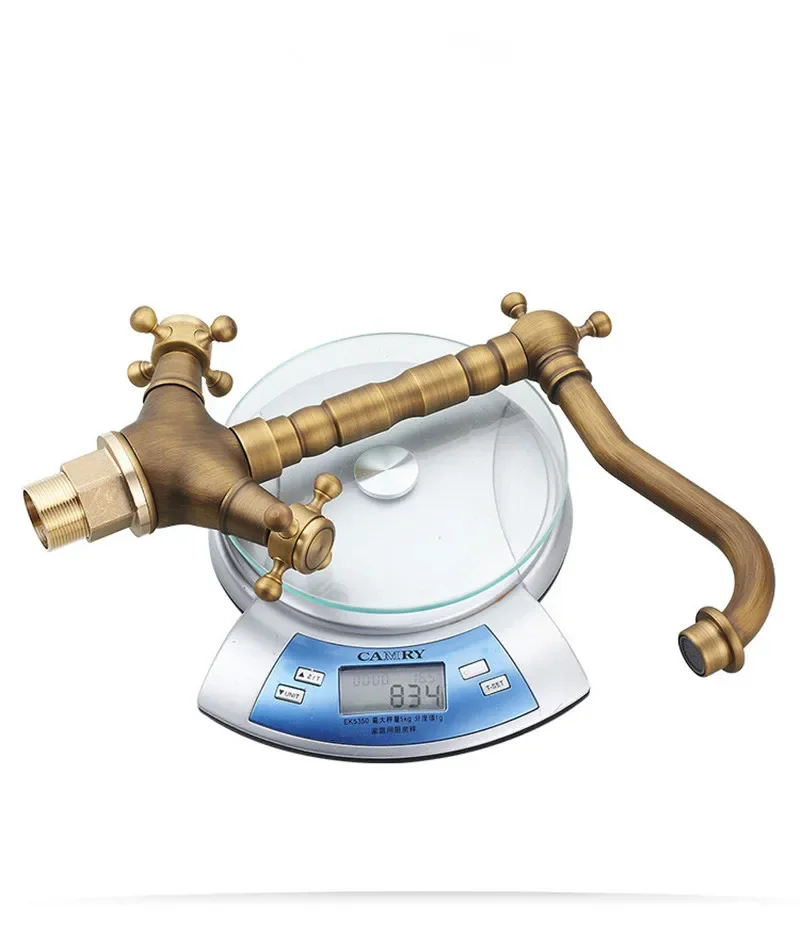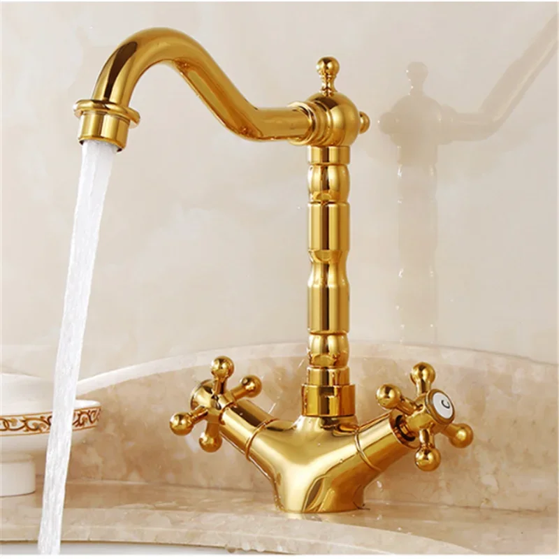 Robinet de salle de bain en laiton doré robinet de lavabo de salle de bain antique mitigeur d’eau froide et chaude mitigeur d’évier robinet à double poignée monté sur le pont